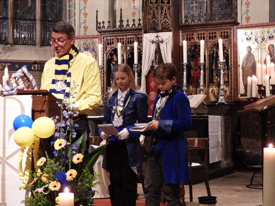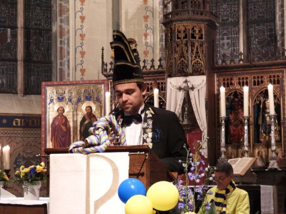 Het carnavalsweekend startte in de Simon en Judaskerk. In een sfeervolle viering werden jong en oud betrokken De hoogheden werden opgewacht door pastoraal medewerker Henny Heerts en pastor Jan Kerkhof Jonkman. De Dakkapel verzorgde een passend muzikaal welkom.