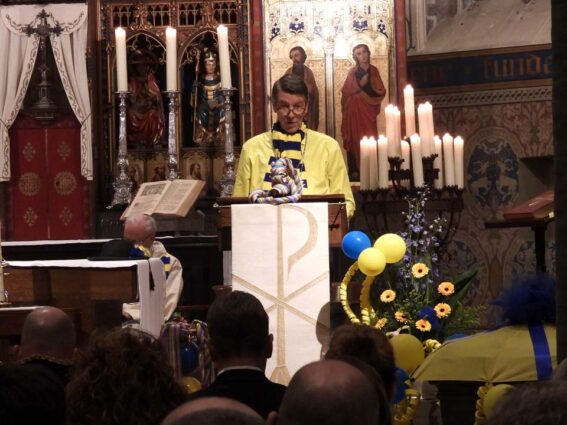 De daaropvolgende voorbeelden werden afgewisseld met het krachtige Zing, vecht, huil, bid, lach werk en bewonder van Ramses Shaffy. Ook hier klinkt het Kunnigheid in door. Markies Niek Busscher nam het slotwoord voor zijn rekening. Maar het echte slotstuk vormde het Ootmarsumse volkslied dat massaal werd gezongen door alle mensen in de kerk. Hoe mooi is het dat in alle Kunnigheid iedereen na afloop een polonaise kon houden door de hele kerk. Dat voelt als Kunnigheid!!