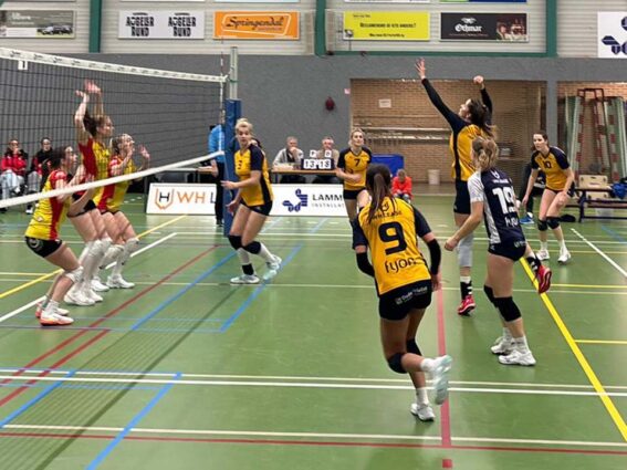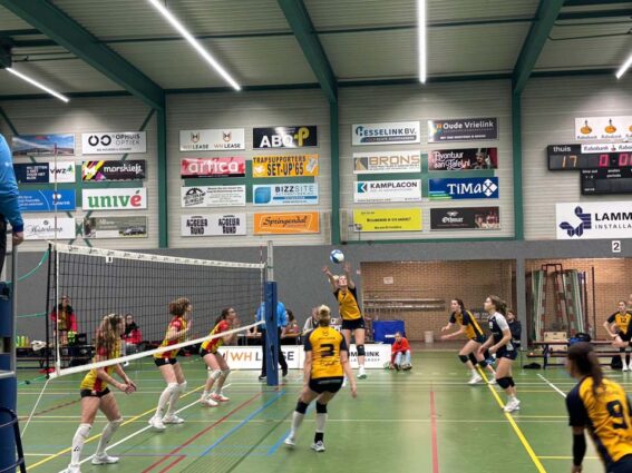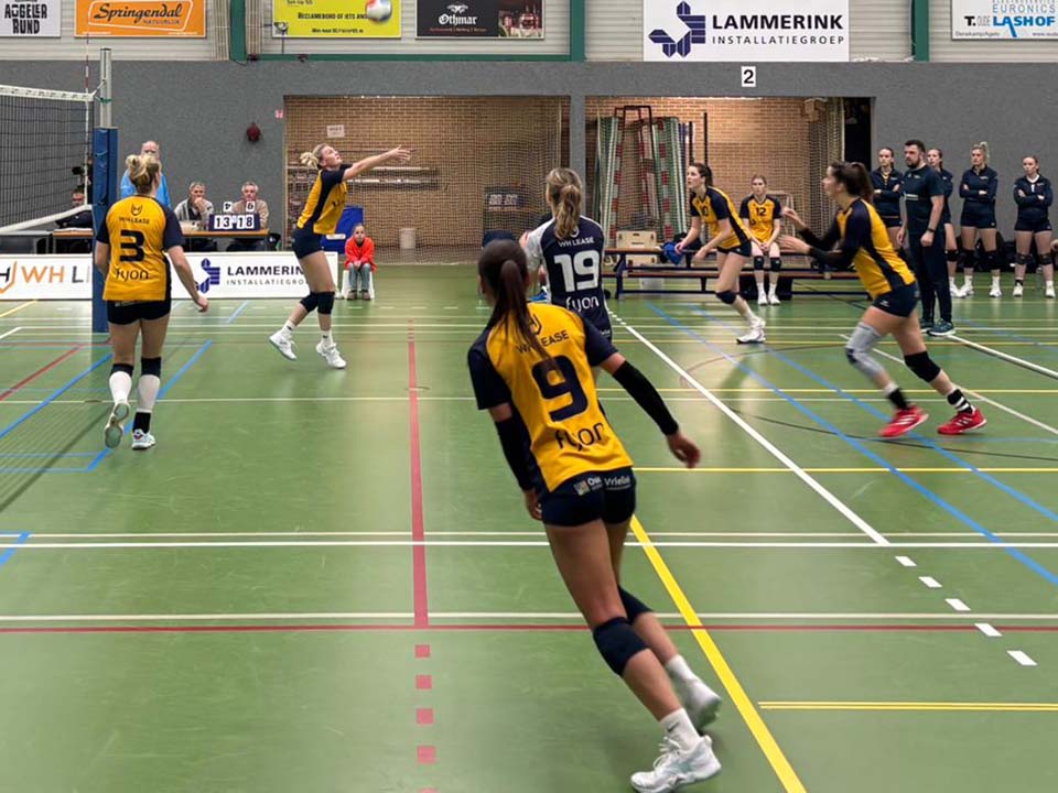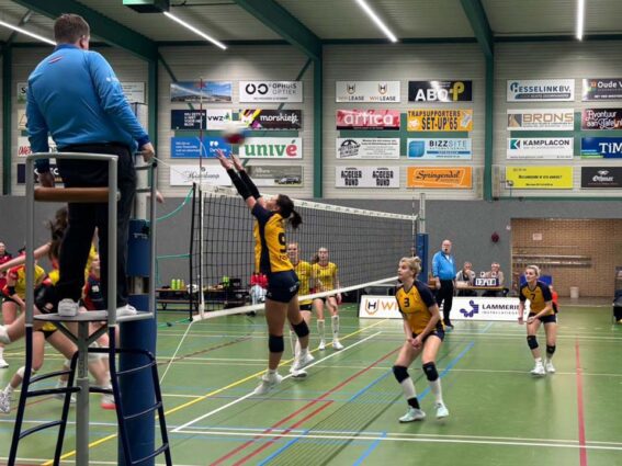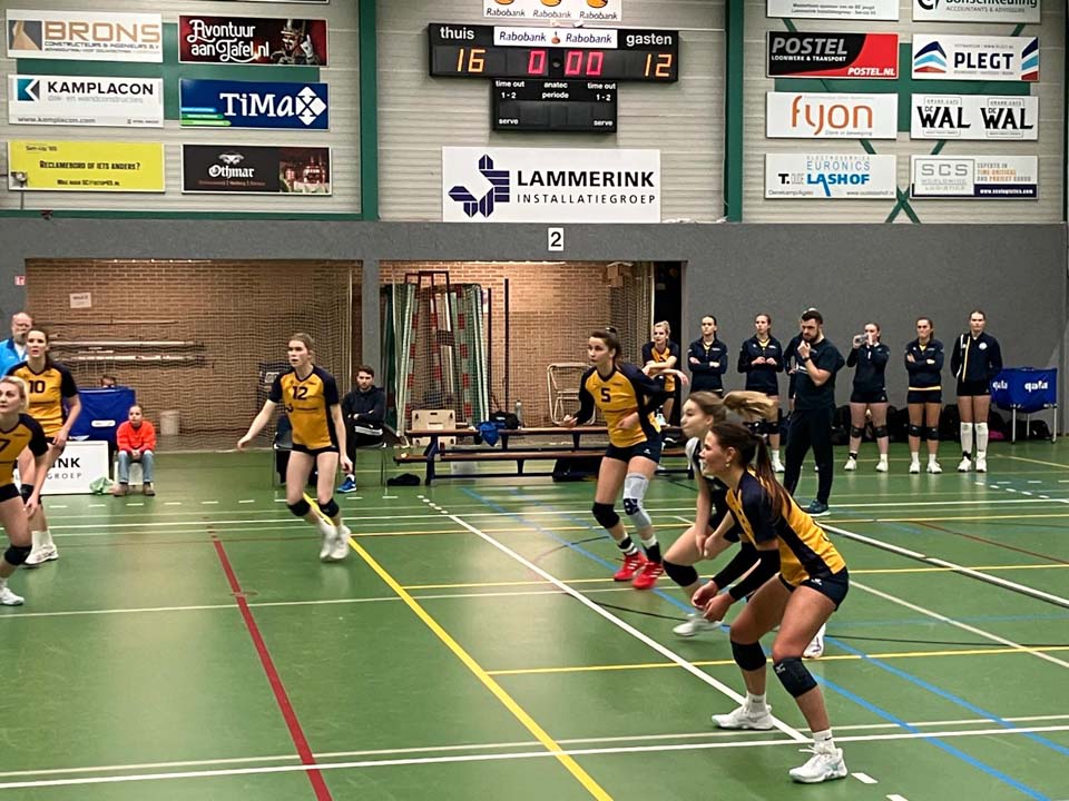 Het lukt het eerste damesteam van Lammerink Set-Up ’65 maar niet om een constante wedstrijd af te leveren. Het team van Damir Colo speelde in de eigen sporthal opnieuw te wisselvallig om de winst naar zich toe te trekken. Na een heel behoorlijke eerste set verloor de thuisploeg de volgende twee sets. Het wist in set 4 de stand gelijk te trekken. In de beslissende vijfde set was het gogme weer weg en via 7-1 werd het 15-8 voor Dynamo dat daarmee de wedstrijd met 3-2 won.
