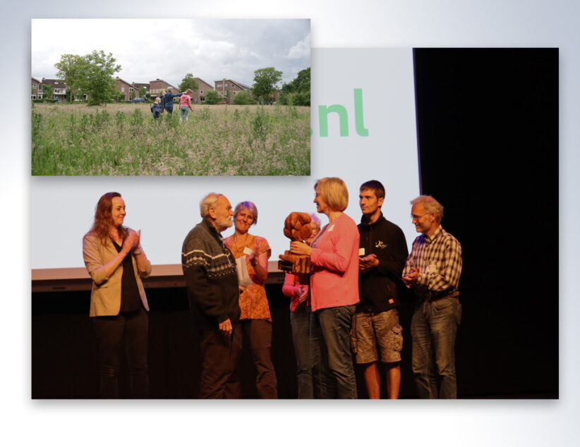 Het Landje van Niets, een buurtproject in de wijk Deventer Vijfhoek mag zich vanaf vandaag het mooiste Natuurinitiatief van Overijssel noemen. Op het drukbezochte Groenbezig Festival in Raalte mochten de buren uit de Vijfhoek de prijs in ontvangst nemen. “We zijn allemaal ontzettend blij, we hebben er hard voor gewerkt”, vertelt Anneke Rodenburg namens het initiatief. Het Landje van Niets ontving de Hans Grotenhuis prijs van de vorige winnaar: Harm Piek van de Noabers van Zudert uit Dwarsgracht.