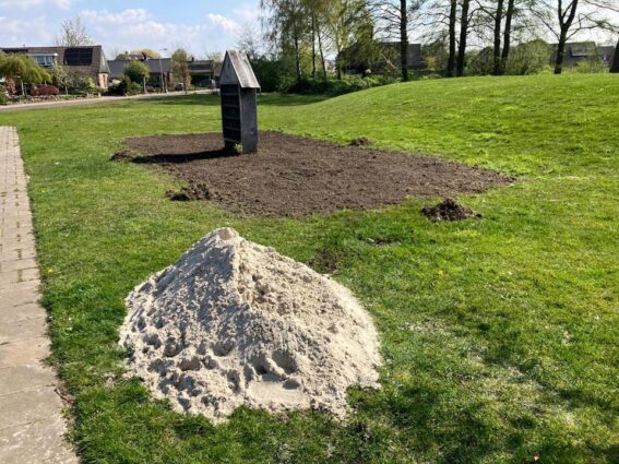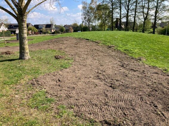 Met veel enthousiasme strooiden de leerlingen de zaden op de door de gemeente bewerkte perken. Daarna werd alles in geharkt en vervolgens zag het er allemaal keurig uit. Nu is het wachten op de ontkieming en de hopelijk vele insecten, die van deze bloemenpracht gaan genieten.