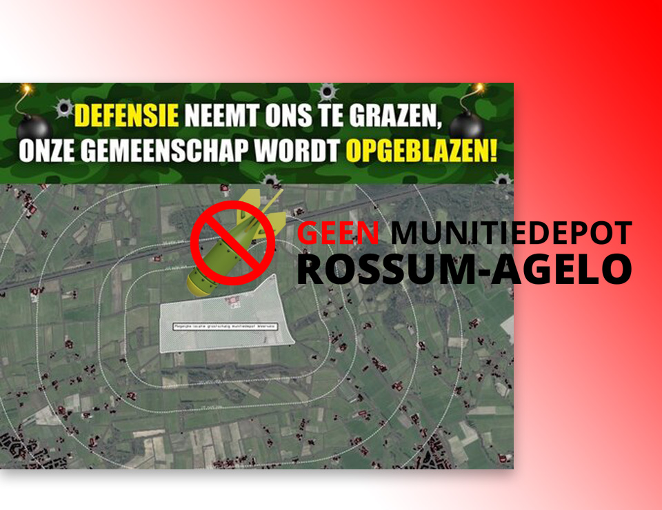 Noabers uit Agelo-Rossum-Weerselo-Reutum hebben een mail gestuurd naar het ministerie van Defensie en de vaste Kamercommissie Defensie. Het is een massaal en indringend Noabergeluid tegen de komst van een grootschalig munitiedepot in het hart van de gemeente Dinkelland. Vanaf het allereerste begin dat duidelijk werd dat het ministerie van Defensie haar oog heeft laten vallen op een groot terrein in het gebied Rossum-Agelo-Reutum klinkt er een massaal protest van bewoners in en rondom deze locatie. In eerste instantie maakte Defensie acht locaties bekend, waaruit gekozen zou worden. Inmiddels zijn er nog drie potentiële gebieden over, waaronder dus ook dit 88 hectare grote terrein tussen pakweg de Wolfsbergweg en de Paalmaatsdijk. Mocht de keuze vallen op deze locatie dan worden er zo’n 100 munitiebunkers gebouwd. In een zone tot 700 meter rondom dit munitiedepot mogen geen mensen wonen. Concreet betekent dit dat er maar liefst 29 huishoudens (boer en burger) hun huis uit moeten en hun grond afstaan. Ook voor de aangrenzende bewoners (tot 1900 meter) wordt het een probleem om bijvoorbeeld bouwkundige aanpassingen te doen of een toekomstige uitbreiding.