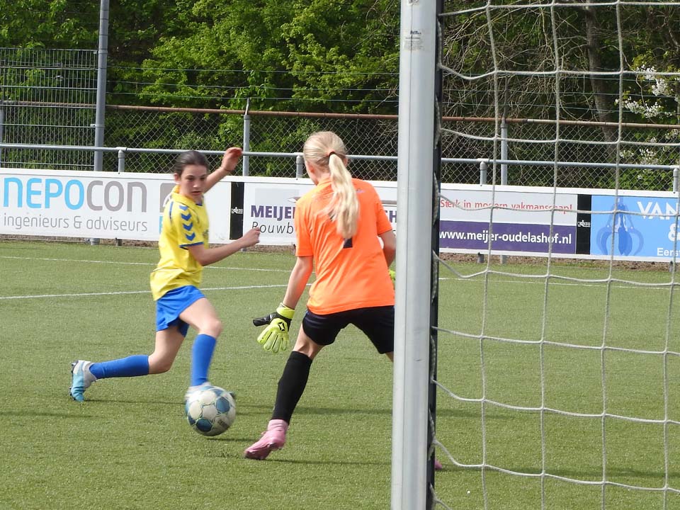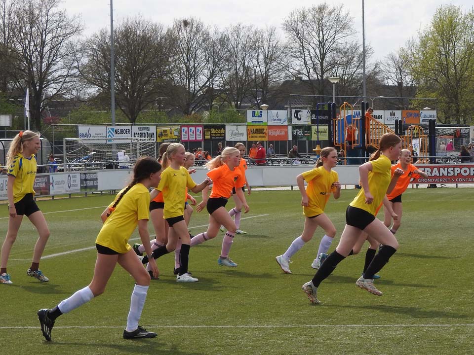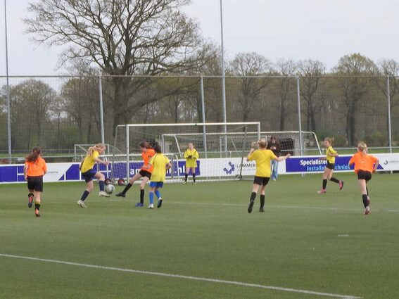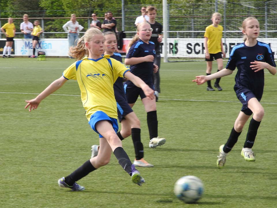 De meisjes van de Meander lieten in hun finale zien de sterkste te zijn. Ze namen met een knap afstandsschot de leiding, maar lieten zich na een corner toch enigszins verrassen. Hierdoor kwam de Willibrordusschool op gelijke hoogte. Het initiatief bleef bij de Meander. De Ootmarsumse meiden kwamen dan ook terecht op een 2-1 voorsprong. Na het laatste fluitsignaal barstte het feest los en kan dit team zich opmaken voor de regionale wedstrijden. Bij de meiden werd de Zevenster derde door de Kingschool in de troostfinale met 1-0 te verslaan.
