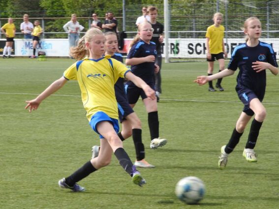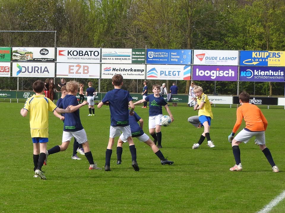 Onder perfecte weersomstandigheden werd het schoolvoetbaltoernooi van de gemeente Dinkelland afgewerkt. De organisatie op ’n Tooslag was in handen van KOSC vrijwilligers. Het toernooi verliep gesmeerd en de wedstrijden konden steeds keurig op de vastgestelde tijd beginnen. Spannende wedstrijden, maar ook grote uitslagen, omdat het krachtsverschil in sommige gevallen duidelijk zichtbaar was. De ‘grote’ scholen komen logischerwijs bovendrijven en daarom is er al een aantal jaren geleden besloten om de indeling aan te passen. Er is een Eredivisie en Eerste Divisie en dat geeft ook de kleinere scholen kansen om leuke wedstrijden te spelen. En wat zaten er mooie voetbalpotjes bij. Zowel bij de jongens- als de meisjesteams. Na de poulewedstrijden waren er de halve finales, de troostfinales en de grote finales.