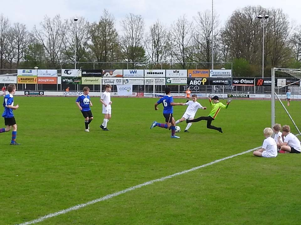De Meander had dit keer, net als vorig jaar, ‘het thuisvoordeel’ en dat vertaalde zich in twee finaleplaatsen. De meiden van de Meander wisten hun finale te winnen en wel met 2-1. Voor de jongens van de Ootmarsumse basisschool lukte het niet, want de Zevenster won deze eindstrijd verdiend met 2-0. De finale in de Eerste Divisie werd een mooi spektakelstuk. De beide goalies van de Bernardusschool en Alexanderschool onderscheidden zich al in de reguliere tijd. De clash eindigde in 1-1, dus moesten strafschoppen de beslissing brengen. Met twee keepers, die wel van een showtje hielden, werd het smullen geblazen. De goalie van de Bernardusschool kon na afloop niet meer kapot, want hij wist drie van de drie strafschoppen knap te stoppen. De blijdschap was groot en het shirtje ging uit.