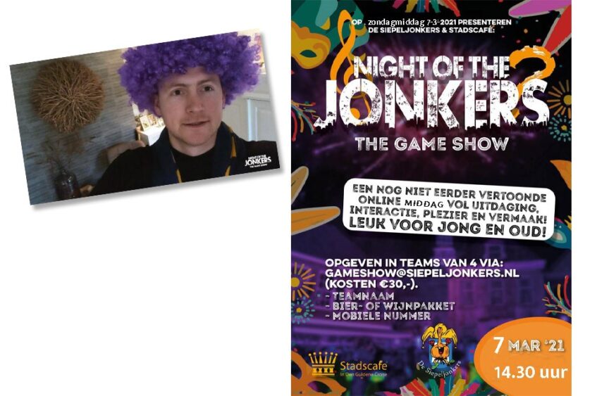 ‘The Night of the Jonkers’: The Gameshow is dus verplaatst naar zondagmiddag 7 maart 2021 vanaf 14:30! Het ophalen van de pakketten blijft wel op zaterdag 6 maart staan!
