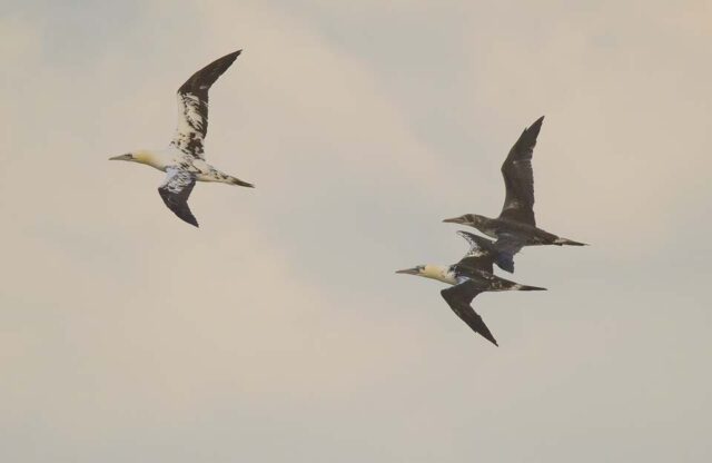 De laatste dag hebben de vier vogelaars ook nog even langs de kust geteld. De wind kwam uit het westen met kracht 4/5. Hierdoor werden de zeevogels mooi richting de kust geblazen. Voor het eerst konden Alwie, Marcel, Patrick en Robert hier de jan van genten van dichtbij bekijken en fotograferen.