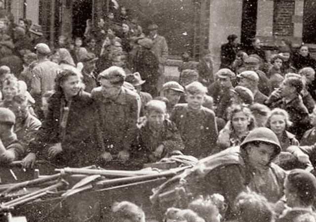 Op de foto is captain Rawkins in een versierde Grotestraat te zien met de echtgenote van burgemeester Schimmelpenninck van der Oye.