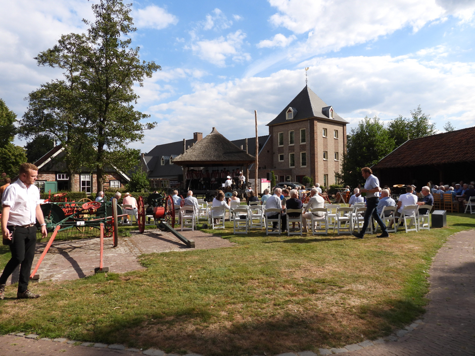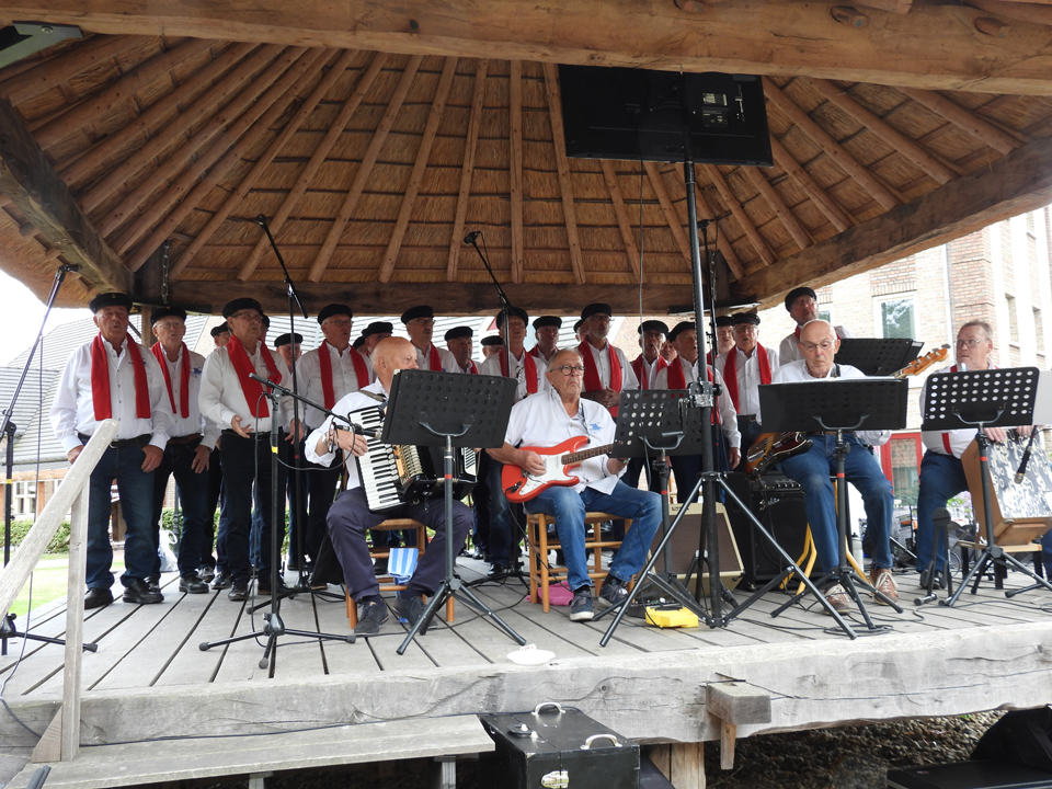 Daarna vertrok het gezelschap naar de Kapberg waar het Shantykoor ‘De Schuytevaerders’ uit Tubbergen zorgde voor een zeer gezellige sfeer. De vrijwilligers werden getrakteerd op heerlijke koele drankjes en noaber Gasterij Oatmössche voorzag het gezelschap van heerlijke hapjes. Een heerlijk samenzijn om herinneringen te delen en te weten dat je met elkaar als vrijwilligers de schouders er onder zet om het openluchtmuseum Ootmarsum een toekomst te geven. Met een kruikje ‘Los Hoes Kruidenbitter’ voor alle vrijwilligers werd deze geslaagde feestmiddag afgesloten.