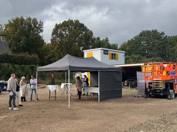 Een opvallend element tijdens het open huis was de inzet van een hoogwerker, waarmee bezoekers letterlijk een kijkje in de toekomst konden nemen – vanaf hoogte konden zij zich alvast voorstellen hoe het uitzicht vanuit een van de toekomstige appartementen zou zijn. Voor wie liever met beide benen op de grond bleef, was er een innovatieve oplossing: met behulp van een 360 graden VR-bril konden geïnteresseerden virtueel door de nog te bouwen appartementen wandelen en zo een realistische indruk krijgen van de indeling en sfeer. Velen zagen zichzelf al wonen in deze nieuwe, levendige woonomgeving en de gunstige ligging nabij het stadscentrum en de natuur.