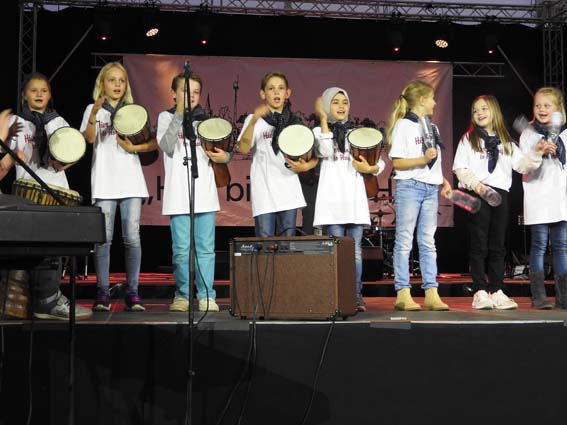 De avond begon met een filmpje, waarin Peter uit Neuenhaus de hoofdrol had. Hij voerde de mensen langs bekende plekken en knoopte gesprekken aan met inwoners en bestuurders van de 650-jarige stad. Georg Hagmann begroette de aanwezigen op hartelijke wijze. Hij is de voorzitter van de Heimatfreunde uit Neuenhaus. Hij stond stil bij wat het woord Heimat voor betekenis heeft. “Het kan voor iedereen anders zijn. Voor sommigen is het waar ze samen wonen, voor anderen waar tradities gevierd kunnen worden en er zijn er die zeggen dat die Heimat de plek is waar Dinkel en Vecht samenkomen. Hier bin wij in ieder geval to Huus,” laat Hagmann weten. Vervolgens gaf hij het woord, of beter de stemmen aan het kinderkoor van de Carl van der Lindeschule, die veel geoefend hebben op een aantal liedjes in het plat Duits.