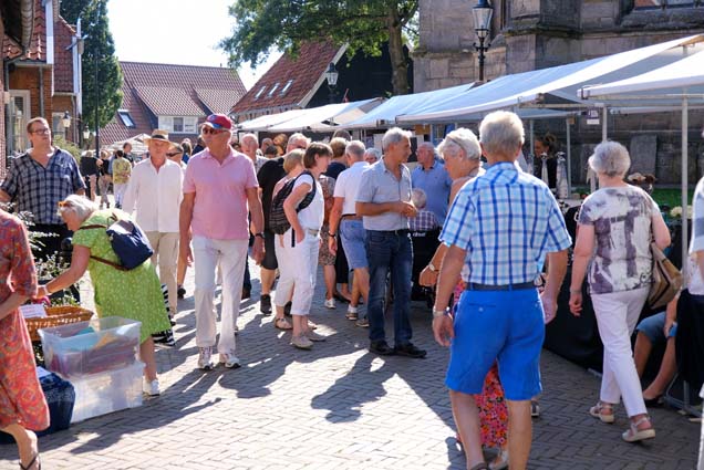 Het is en blijft een bijzonder evenement. Kunst in Ootmarsum kende zijn tweede dag en opnieuw waren de straatjes druk bevolkt met vele belangstellenden. De discussie of het vrijdag of zaterdag drukker was doet dan eigenlijk niet ter zake. Veel mensen liepen over het circuit dat op deze tweede dag toch weer zo’n 200 kunstenaars herbergde. Op de vrijdagavond waren de harde werkers van Kunst in Ootmarsum en leden van volleybalvereniging Set-Up ’65 druk in de weer om het circuit met de Ganzenmarkt uit te breiden. Vertegenwoordigers van de gemeente hielden een oogje in het zeil om met eigen ogen te zien of ambulance of brandweer een vrije doortocht kon krijgen tijdens eventuele calamiteiten. Tevens, gelet op de warme temperaturen, moet de organisatie van Kunst in Ootmarsum een zogeheten hitteplan opstellen en dat betekende water inslaan als er gasten door de warmte onwel worden.
