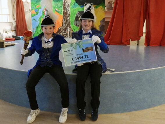 Toen volgden er nog wel wat officiële momenten. De prins en prinses mochten het bedrag bekendmaken van de opbrengst van de Kerstmarkt. Deze bracht maar liefst 1454,72 euro op. Het geld wordt besteed aan het vergroenen en verfraaien van de schoolpleinen. Ook was het tijd voor de proclamatiepunten van de prinses en prins.