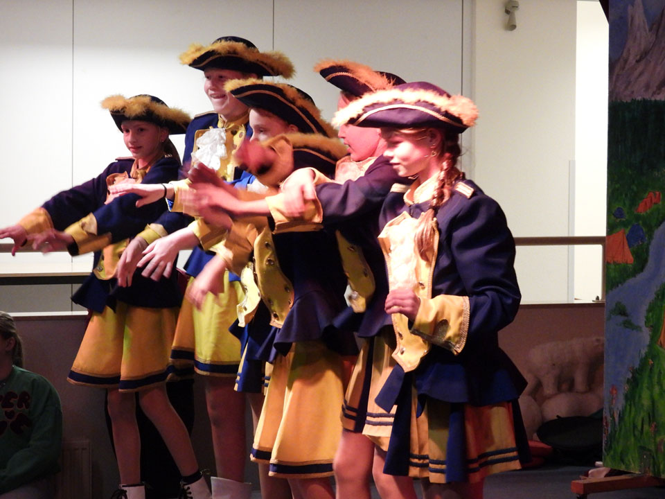 Ten eerste: krijgen alle kinderen, juffen en meesters een onderscheiding. Tijdens het schoolcarnaval moet iedereen deze onderscheiding dragen. Onze onderscheiding zullen we presenteren in alle klassen. Alaaf Alaaf Alaaf!!!