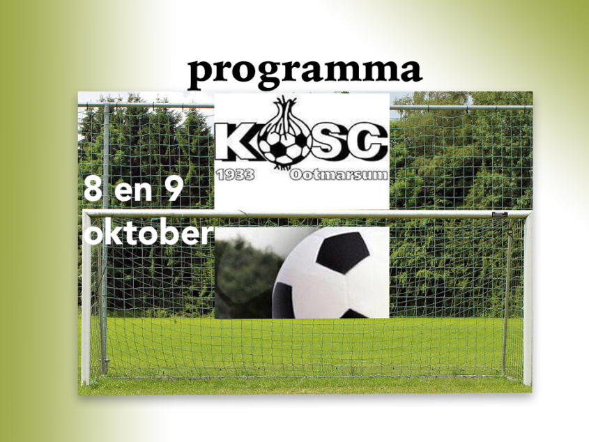 Om 9.00 uur deze morgen op 8 oktober rolt de bal voor het eerst dit weekend. Drie jeugdteams van KOSC zijn er dan te bewonderen op het sportcomplex ’n Tooslag. KOSC 2 zaterdag sluit de dag af met een thuiswedstrijd tegen SDC.