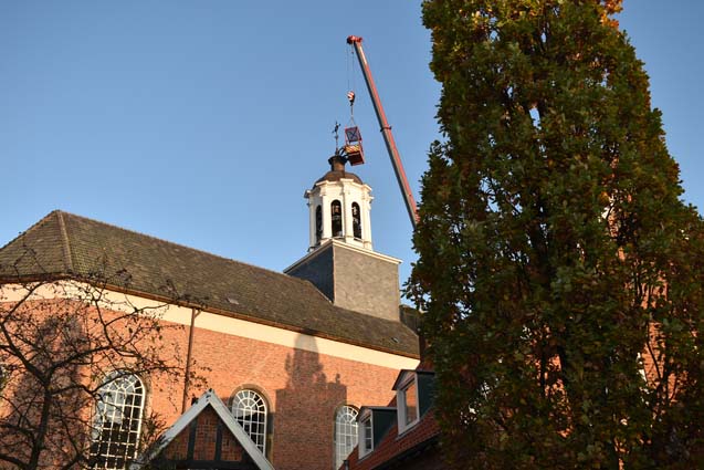 De Protestantse kerk in Ootmarsum is ontdaan van zijn haan, maar met het plaatsen van een nieuwe cijferring met wijzers wel weer bij de tijd.
