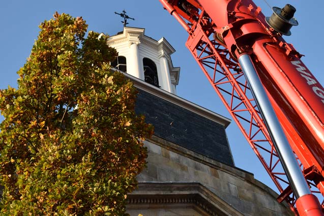 Op de vroege woensdagmorgen bij een temperatuur rond 0 graden Celsius werd de hoogwerker van Wagenborg op de Ganzenmarkt klaargezet om twee werknemers van Reinaert Vergulders uit Groenlo met de bak naar boven te hijsen. Bij de toren aangekomen werd eerst de haan, uit 1876, verwijderd en op zich is dat niet het moeilijkste werk, want de haan draait op een pin en is eenvoudig te demonteren.