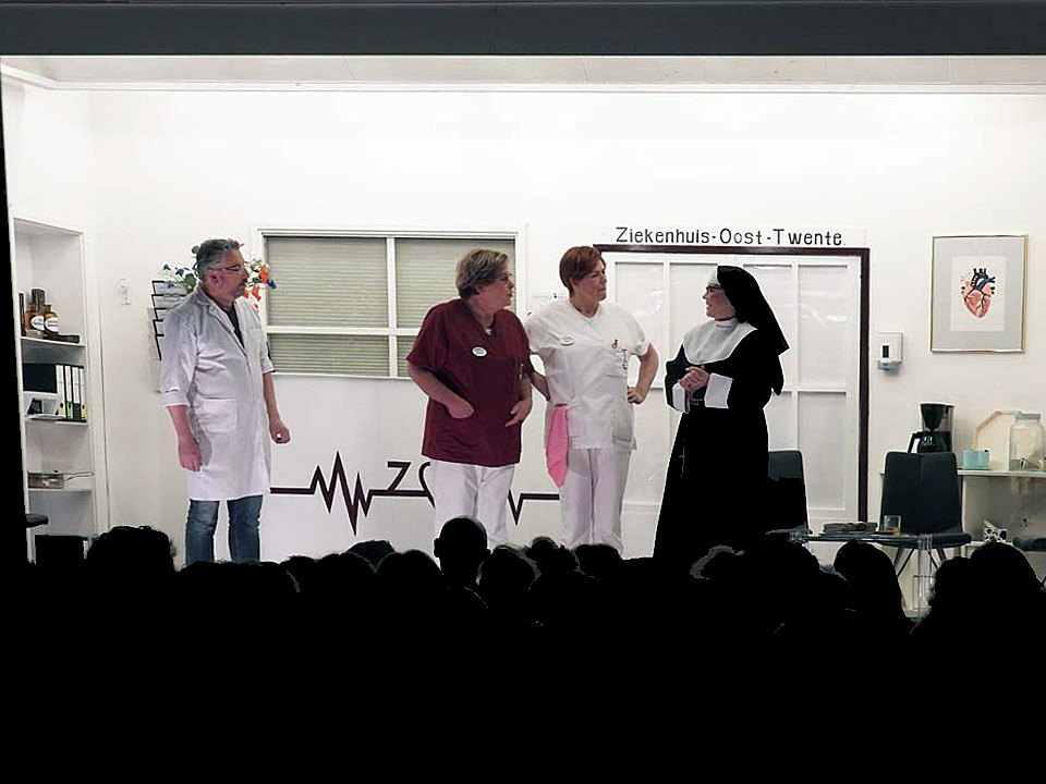 Leden van de toneelvereniging Ootmarsum zorgden er vijf voorstellingen voor dat het publiek genoot van ‘Doktertje spelen’. Dat was dan ook de titel van de klucht geschreven door Carl Slotboom. Het speelde zich af in het ziekenhuis Oost-Twente waar vele relationele en ‘zorgelijke’ situaties zich ontwikkelden.