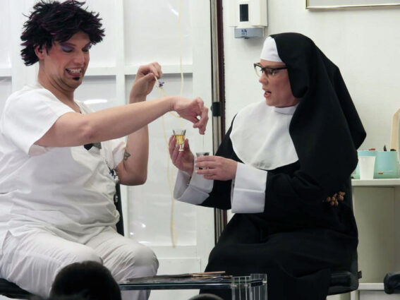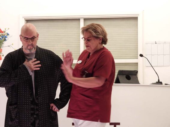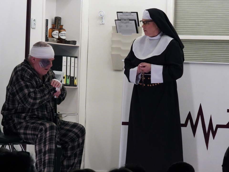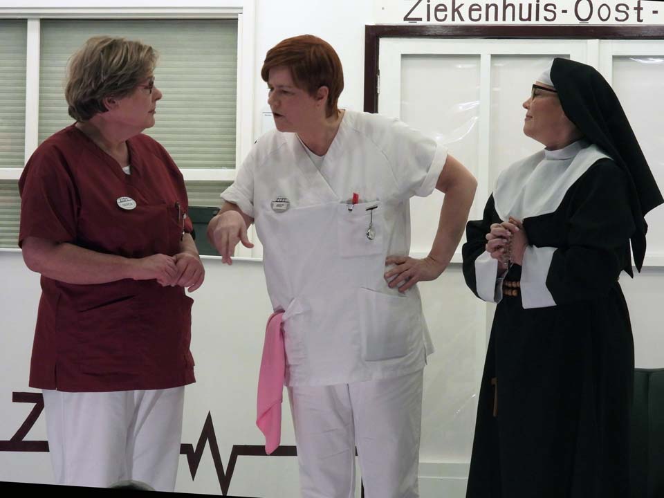 Als een rol bij iemand past dan is dat verpleger Bob en perfect ingevuld door Marcel Brons. Een speler vol energie, die echt alles geeft wat hij in zich heeft. Caroline Velers bracht met verve de rol van afdelingshulp, die gelet op de situatie er ook nog een slaatje uit wilde slaan. Natuurgetrouw speelde zij deze rol, gewiekst, maar ook realistisch en waar nodig nuchter.