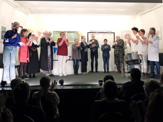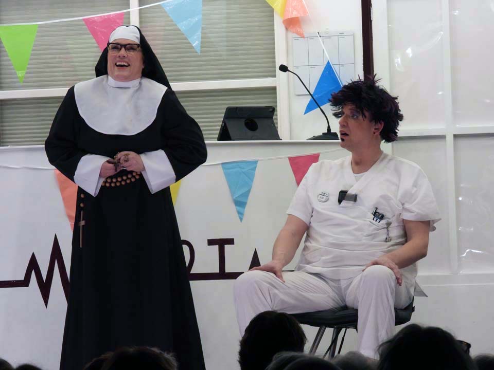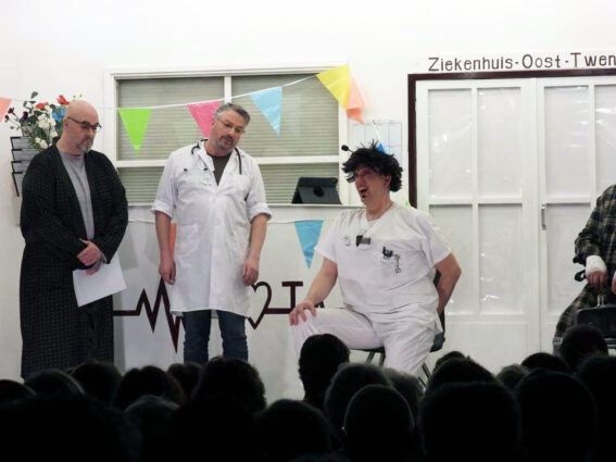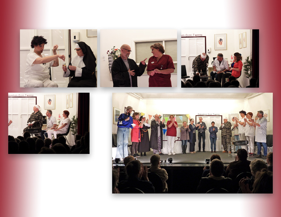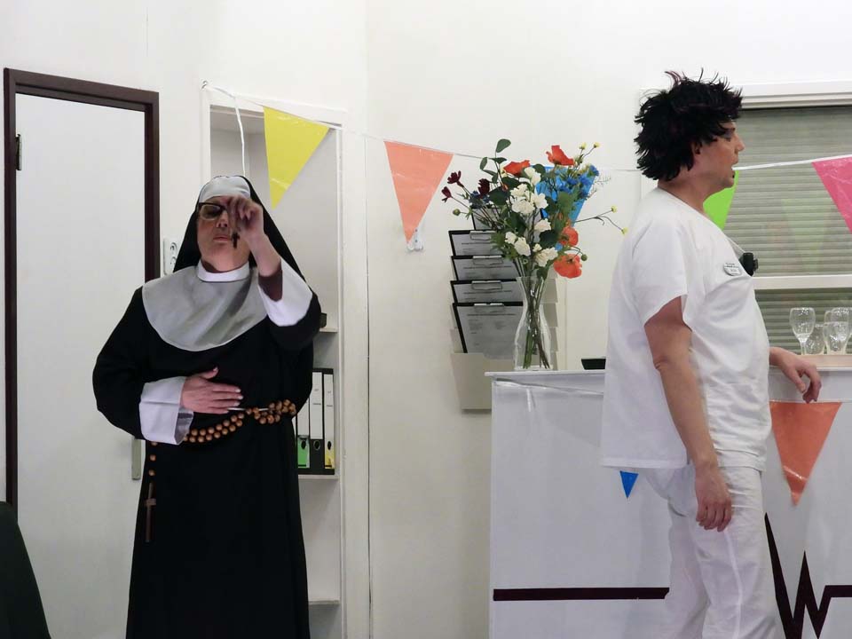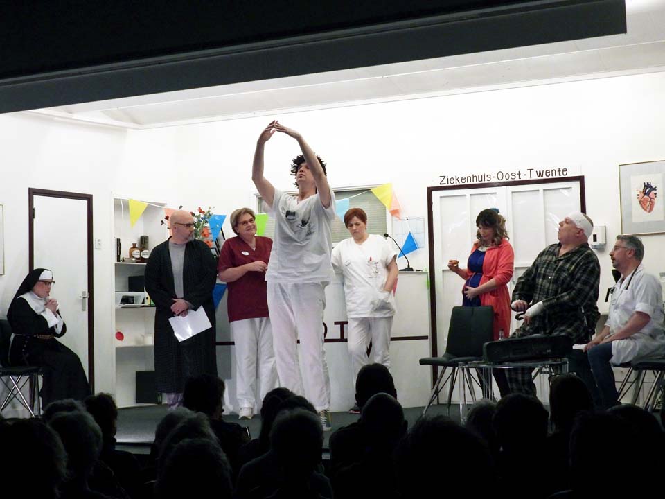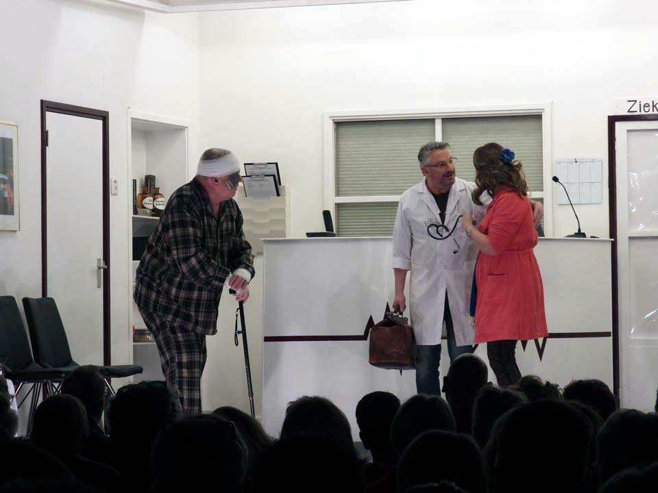 Marcel Groot Rouwen speelde de ‘bankrover’ en de afdelingsarts en die rol was hem op het lijf geschreven. Petra Lubbers was de hoofdzuster, een serieuze rol, maar hoe knap was het hoe ze na avances van één van de patiënten in trance raakte en dit vele minuten lang wist vol te houden, terwijl er om haar heen een feestje losbarstte.