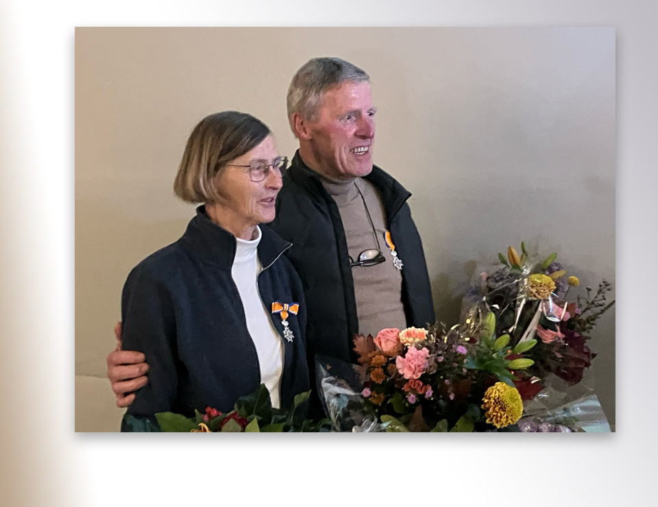 Van harte gefeliciteerd! Ria krijgt haar onderscheiding als eerste uitgereikt. Want dames gaan voor. Maar ook Jan wordt zeker niet vergeten!