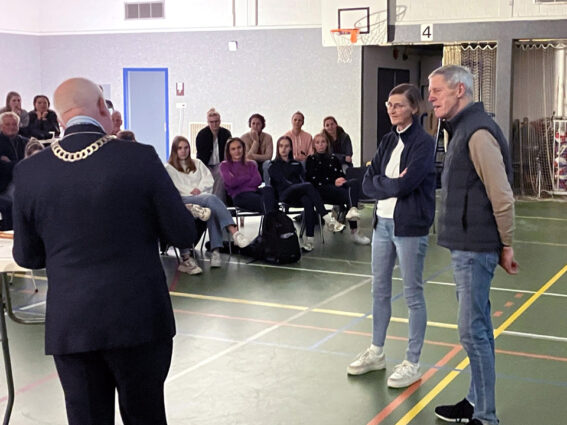 “Allereerst hartelijk dank voor de uitnodiging om aanwezig te zijn op jullie algemene ledenvergadering. Normaal gesproken is zo’n vergadering natuurlijk geen reden om de burgemeester langs te sturen, maar vandaag is het anders. Ik ben hier namelijk om twee van jullie leden te eren. Ik wil daarvoor meneer en mevrouw Eertman naar voren vragen.