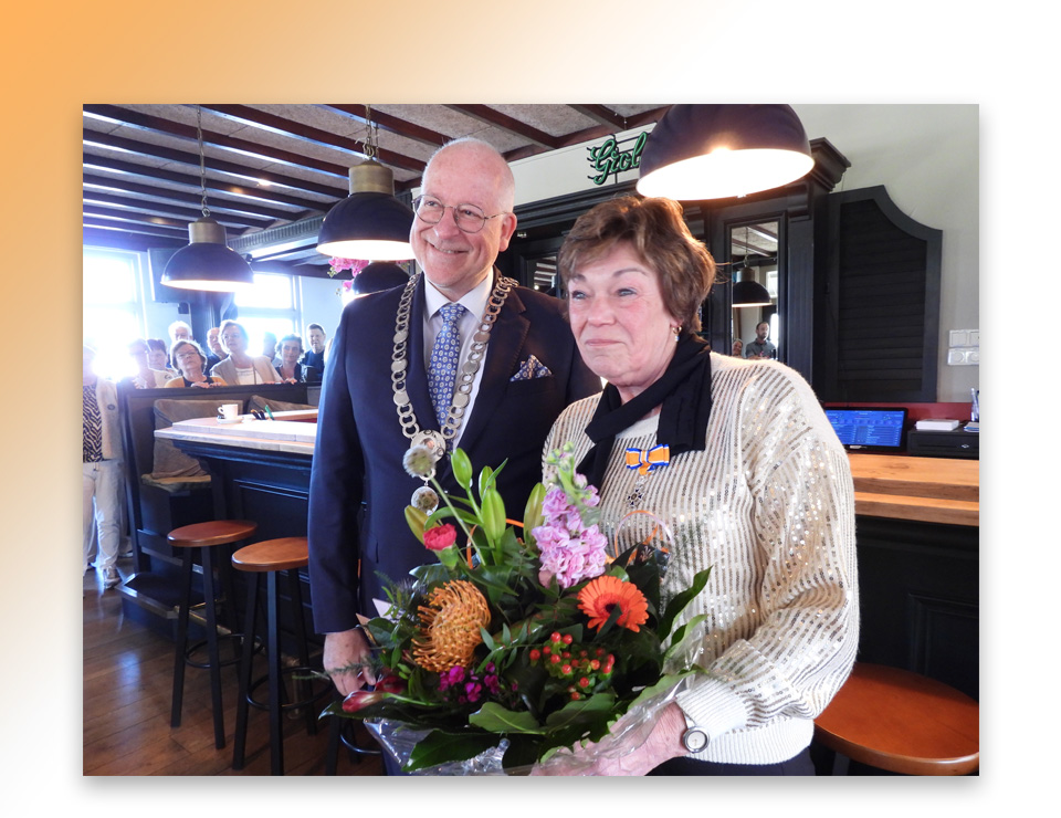 Naast uw betrokkenheid bij de volleybalvereniging, bent u de steun en toeverlaat van uw familie. U hebt jarenlang mantelzorg verleend. Eerst aan uw moeder, later aan uw zwager en nog later aan uw zus. Na het overlijden van uw zwager en zus is de band met hun dochter, uw nichtje, zeer intens gebleven en zij beschouwt u dan ook als haar tweede moeder. Mantelzorg vraagt om toewijding, geduld en doorzettingsvermogen. Het is niet altijd makkelijk, maar daarmee hebt u een enorm verschil gemaakt in de levens van uw naasten.