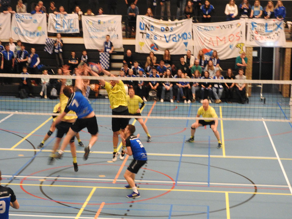De match tussen Blauw-Wit uit Oldebroek en Lammerink Installatiegroep Set-Up ’65 kende alle ingrediënten, die passen in een bekerfinale. Prachtige rally’s, veel fouten, harde aanvallen, mooie verdedigende acties, knullige momenten, maar vooral een spannende, gelijk opgaande strijd, die nipt met 3-2 door Blauw-Wit werd gewonnen. Twee grote supportersgroepen, die tegenover elkaar zaten, zorgden voor een geweldige ambiance om in te volleyballen.