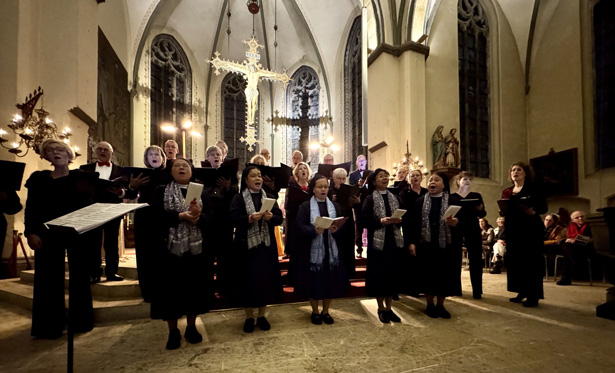 En daar dragen de Zusters van Denekamp zeker ook aan bij. Met hun verschijning, hun zuivere stemmen en hun keuze van de kerstliedjes in zowel het Nederlands als het Indonesisch. Hun inbreng zorgt niet zelden voor kippenvel en ontroering bij de bezoekers. Zuster Christella spreekt als gebruikelijk de kerstboodschap uit.
