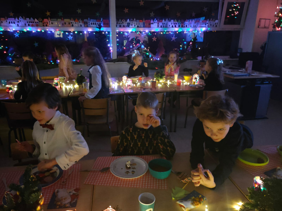 Kerst is en blijft een bijzonder feest. Zeker ook op basisscholen waar de leerlingen op hun paasbest naar school komen. Mooi gekleed om vaak dansend en vrolijk naar binnen gaan. Daar branden de lichtjes en zijn de tafels voor de Kerstmaaltijd sfeervol gedekt. Op basisschool de Meander is het niet anders. De leerkrachten en de leerlingen zorgden er samen voor dat de lokalen in kerstsfeer werden omgetoverd.