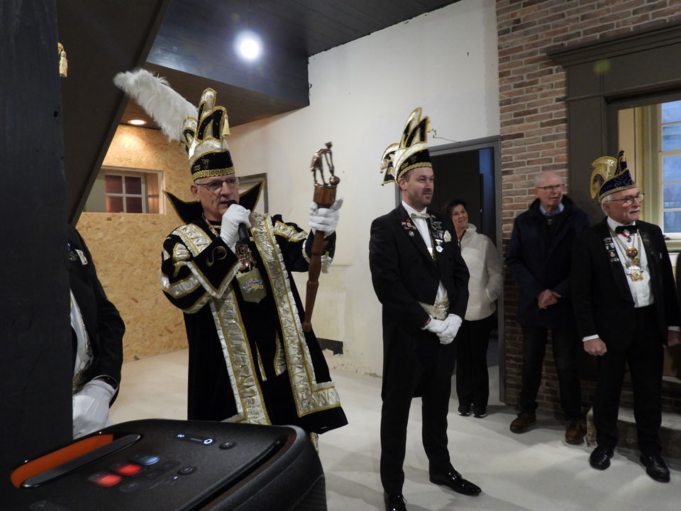 Hans Bolscher sprak namens het bestuur van het Heemhuis en liet weten dat hij het een eer vond om deze traditie op deze locatie te belichten. “Dit wordt een plek voor alle Ootmarsummers waar cultuur, historie en natuur samenkomen. Dus ook alle activiteiten, die met carnaval te maken hebben. Het Siepelhangen is een geweldige traditie, maar in onze Siepelstad hebben we er meer. Dus ik nodig jullie allemaal uit om donateur van het Heemhuis te worden en ook om één keer in je leven deel te nemen aan de Nachtwacht. Ook dat zijn tradities om te koesteren,” geeft Hans Bolscher met een knipoog aan dat er in Ootmarsum meerdere tradities zijn om te omarmen.