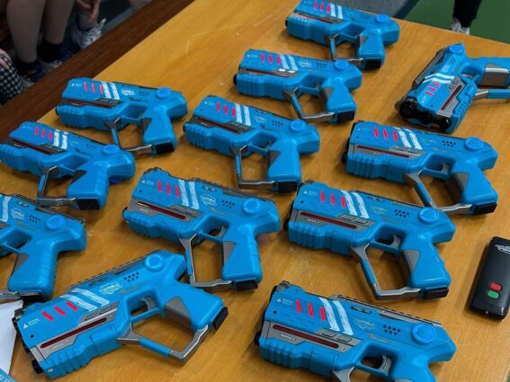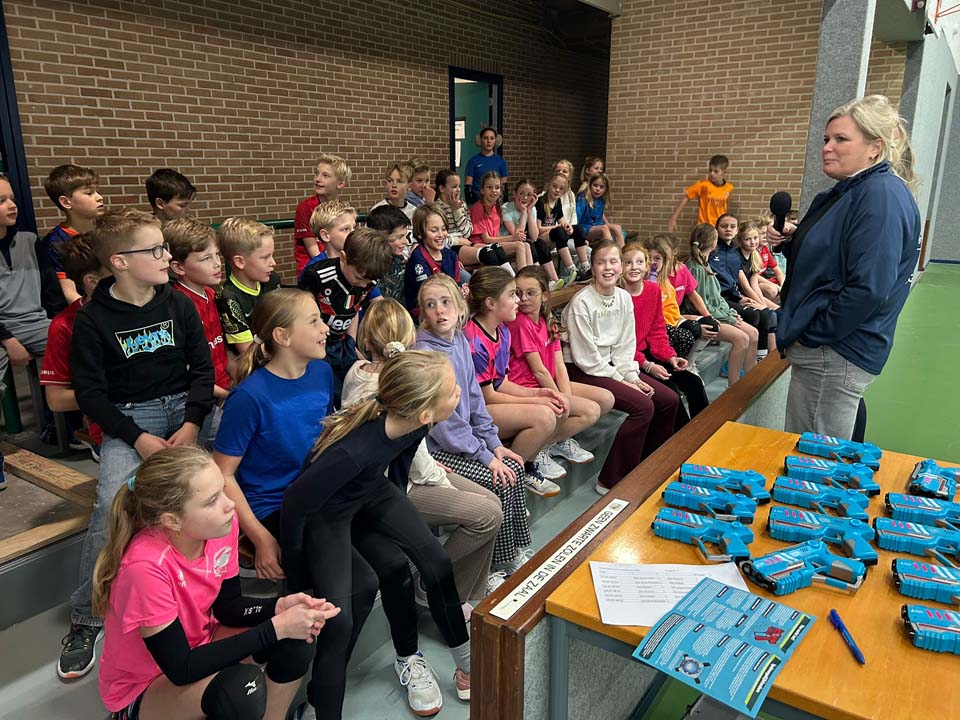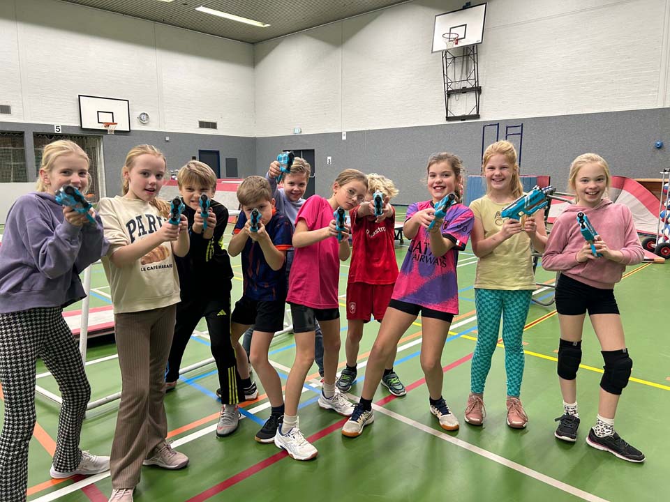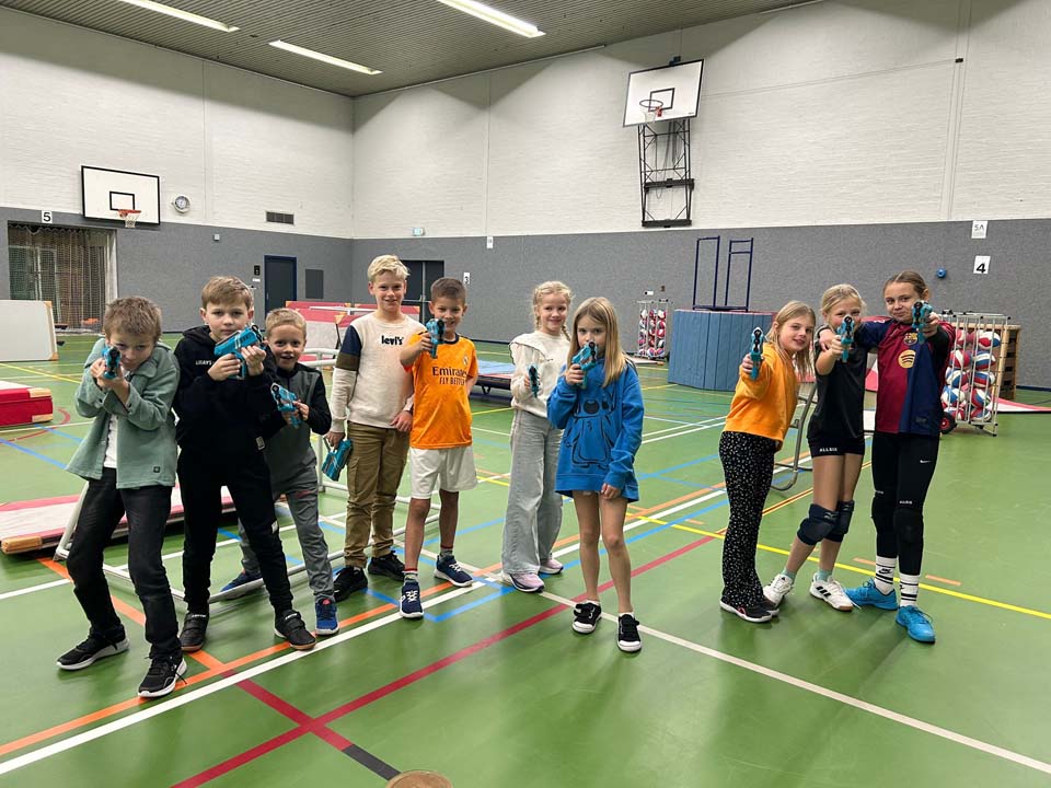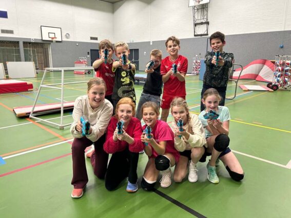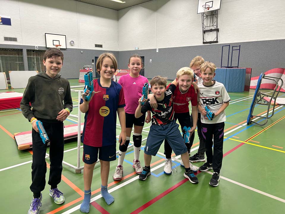 Na dit feest voor de kinderen van de groepen 3,4 en 5 was er een lasergamewedstrijd voor de kinderen uit de hogere groepen 6, 7 en 8. Ruim 60 kinderen van Set-Up ’65 en KOSC hebben zich helemaal uitgeleefd met deze spannende lasergame-wedstrijd. Ook hier viel op met hoeveel enthousiasme en energie de kinderen deze wedstrijden niet alleen beleefden, maar ook het spel speelden. Natuurlijk was er voor iedereen ranja, pepernoten, een zakje chips en een lekker snackje. 😋