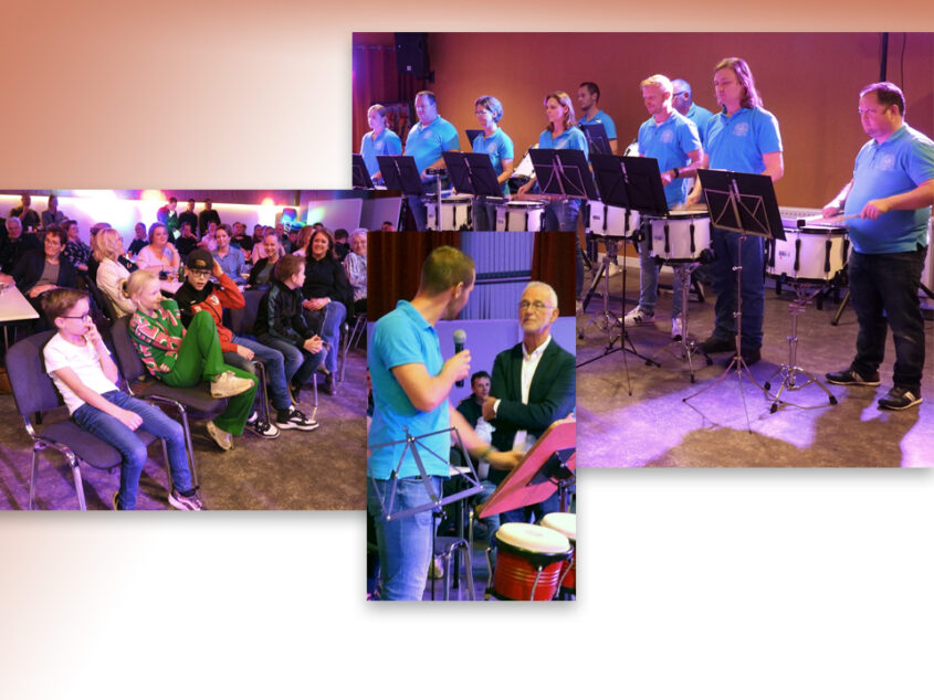 Rond 22.15 uur werden alle vrijwilligers en slagwerkgroepen bedankt door de eigen showmaster en directeur van de drumband, Robbert Wijdenes. Hij heeft met veel toewijding en de nodige humor deze avond aan elkaar gepraat. Nadien werden er hapjes en drankjes genuttigd en bleef het nog lang gezellig bij de 150-jarige muziekvereniging. Het was een schitterende avond met hoogstaande slagwerk presentaties. In combinatie met vriendschap binnen de verenigingen en een hoop gezelligheid was dit de juiste receptuur voor een topavond in het Damast. Nu zal de slagwerkgroep en de harmonie zich richten op het grote afsluitende jubileumconcert op 16 december in de Schalm.