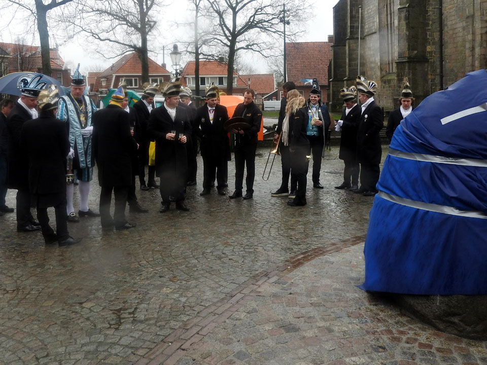 De sleuteloverdracht in Ootmarsum blijft toch steeds een bijzonder gebeuren. Natuurlijk is er de gemeentelijke sleuteloverdracht waar de Siepeljonkers trouwens hun sleutel ‘vergeten’ waren. Burgemeester John Joosten en het Siepeljonkerstrio konden er wel om lachten tijdens de Ootmarsumse sleuteloverdracht. Vorig jaar waren de halve prins Marco en halve Marlies Bram nog het middelpunt. Dit jaar geen corona en geen afgelastingen en dus ontving prins Harry 5 de sleutel. Harry Noordink was opnieuw de vaste spreekstalmeester, die met humor en gevoel voor nuances de diverse mensen aankondigde. Ook burgemeester Joosten nam het woord om Ootmarsum op de hak te nemen in zijn praatje, maar ook hier klonk het lied ‘Het koomp allemoal wa weer goad.’ De Dakkapel blijft een prachtig dweilorkest en de oud-prinsen zorgen op deze ochtend voor de reacties, die de sfeer er goed in brengen.