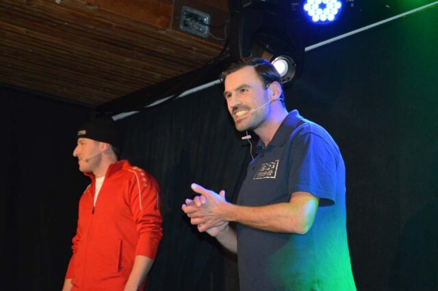 De daanswichter, de zes van het eerste optreden, verzorgden een dans over Las Vegas. Hoe mooi is het om te horen dat er nog 14 anderen staan ‘te dansen’ om ook op het podium te verschijnen. Na dit spetterende optreden was er ruimte voor een hele talentvolle gala-artiest en dat is Jurre Stevelink. Hij heeft meegedaan aan de Twents buutacademie net als de tweelingbroers Niek en Cas Busscher. De laatste twee maakten hun debuut op het podium bij de Othmarridders. Jurre in zijn vertrouwde Agelose decor. Hij schreef de buut voor het grootste gedeelte zelf en bracht deze vol overtuiging. Hij begon met ‘Ik bin aans’ en iedereen verwachtte het bekende om uit de kast te komen, maar hij bleek een fietsenmaker te zijn. Heel knap dat hij in zijn tekst vervolgens allerlei fietsenmerken wist te verwerken. Hij wilde de nacht terug voor de vrouwen. Na een wat aftastend begin op dit vrijdagse gala kwam hij helemaal los en overtuigde hij het publiek. Een echt talent is opgestaan ‘Jurre van de Wiegert’ en als hij met beide benen op de grond blijft staan, en dat kan in Aogel eigenlijk niet anders, kan hij nog jarenlang zorgen voor een prachtige bijdrage aan het Keistenengala.