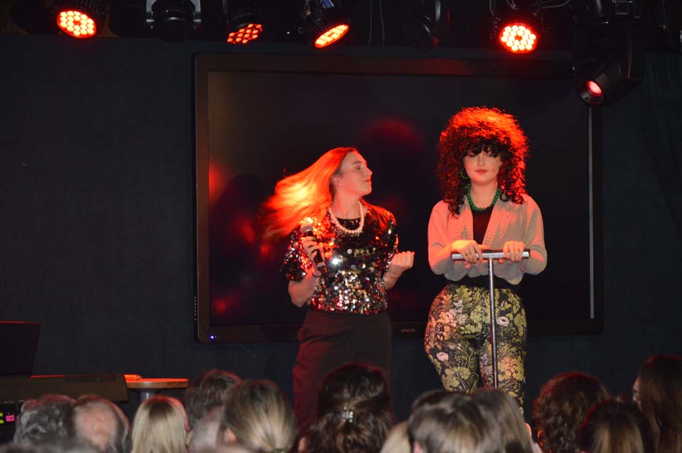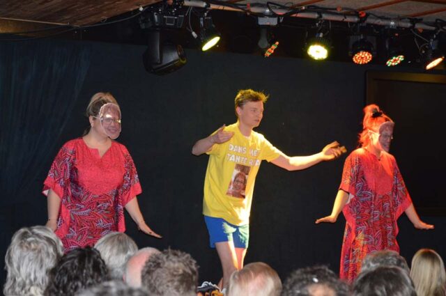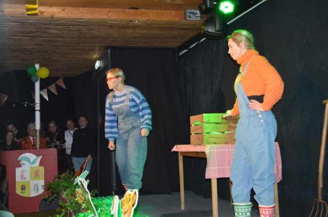 Daarna was er volop aandacht voor Julia Heisterkamp en debutante Annemarie Velthuis als ‘orgel Joke en Caroline van der Plas’. Ook weer heel eigen en dus herkenbaar. “Alles begint bie de boer en ’n wolf et oonze shoarma op.” Ze wisselden hun teksten af met zang en met name ‘The Pianoman’ zorgde voor veel waardering bij het dankbare publiek. ‘Joke’ op orgel en de mondharmonica voor ‘Caroline’, die zich dit instrument in een aantal weken heeft aangeleerd