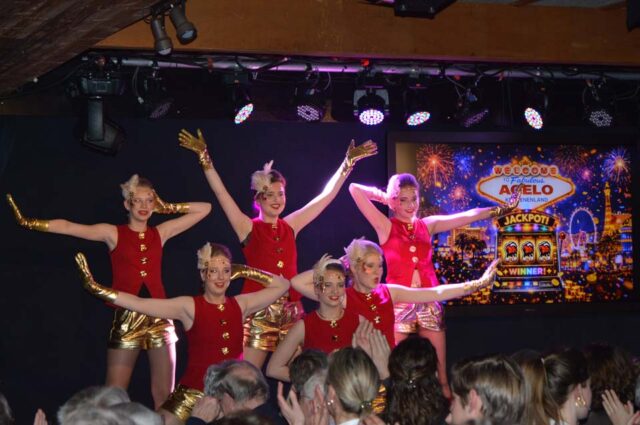 Zes dansmarietjes, Shirley Steggink, Hanne Tijink, Hinke & Dycke Scholten Linde, Pien Bruns en Annemarie Velthuis, beten met veel energie het spits af met een Polkadans. “Ie könt better teeg’n zes mooi weechter ankiek’n, dan teg’n mie an,” verklaarde Theo Scholte Lubberink lachend deze start van het Keistenengala. De toon was gezet en dat kreeg een vervolg in het voorstellingsrondje met ridder Tim en adjudant Koen. Maar wat weet die Koen vol overtuiging zijn ridder Tim aan te kondigen. Ook schoolprins Ties Plas en adjudante Bente Damink werden er bij betrokken, want carnaval in Agelo is voor jong en oud. Of zoals oud-ridder Jan Stevelink in één van de pauzes zei: “De ‘kiezelsteentjes’ rollen vanzelf door naar de Keistenen en op de één of andere manier blijven ze op latere leeftijd bij het carnaval betrokken. Dat is ook de kracht van deze vereniging.”