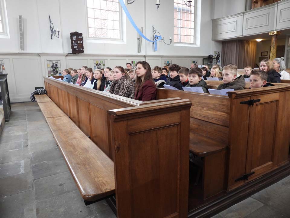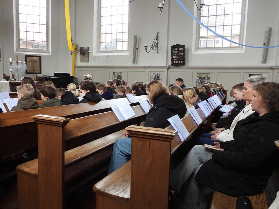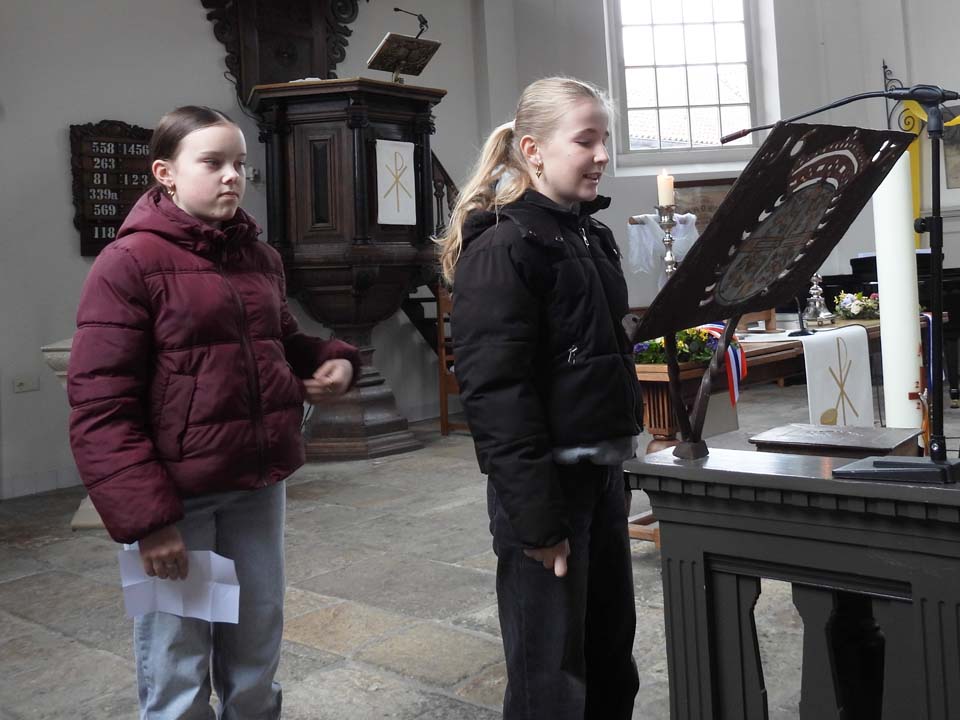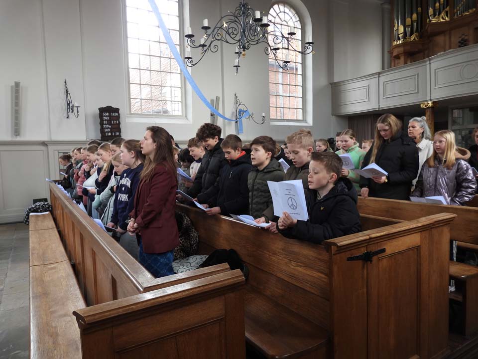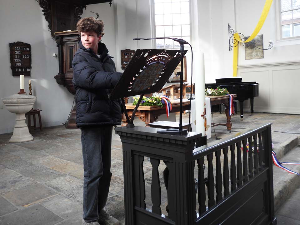 Dit jaar valt 4 april op zaterdag dus kwamen op de derde april de leerlingen van de groepen 8 naar de Protestantse kerk. Leerkracht Dionne Lukens opende deze bijeenkomst en legde een verband met de huidige oorlogen, die in 2026 woeden. Ook vertelde ze dat de verhalen uit WO2 de leerlingen erg aanspraken en dat ze daar op verschillende manieren mee aan de slag zijn gegaan. De leerlingen hebben bezoek gehad van Johan Albeda. Hij vertelde over zijn vader, die volop in het verzet heeft gewerkt. Al die belevenissen maakten op de kinderen veel indruk.