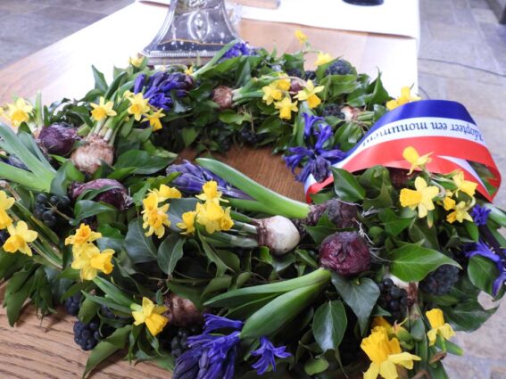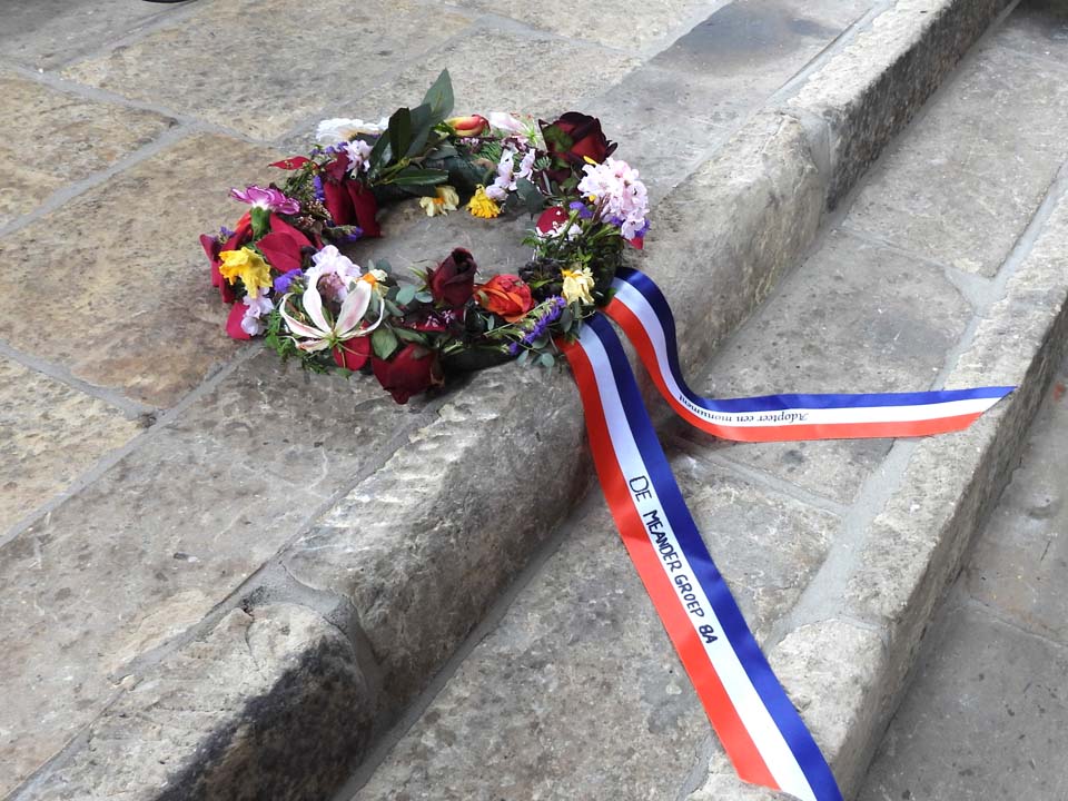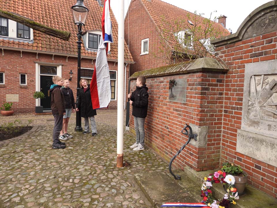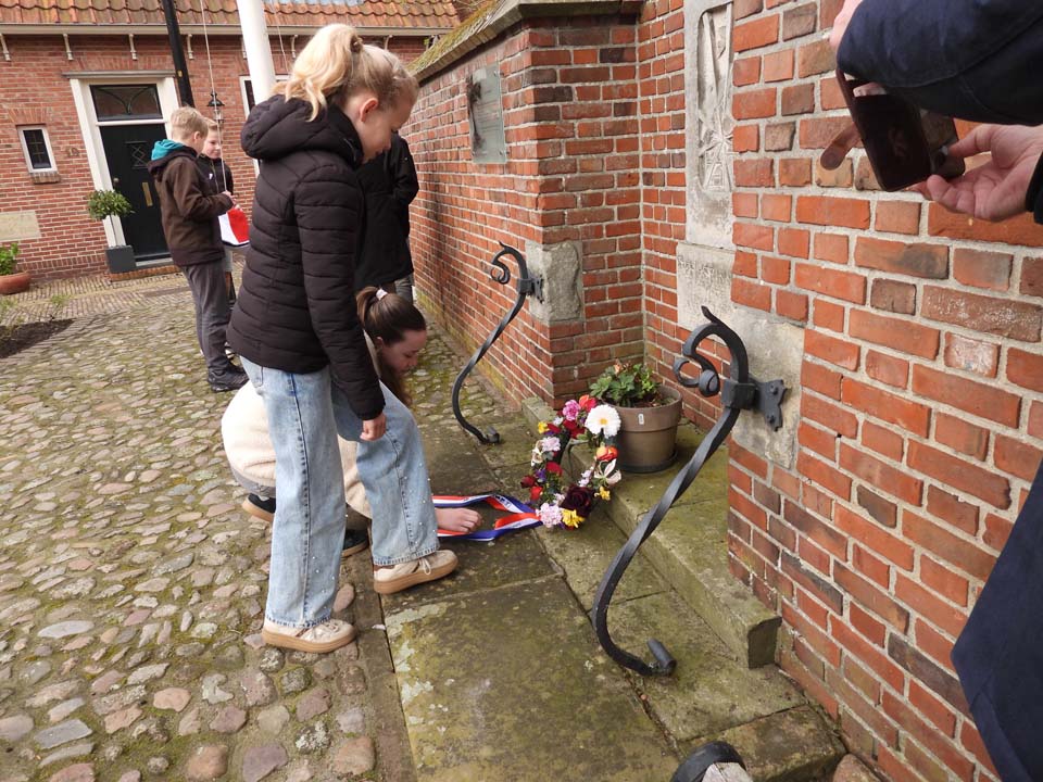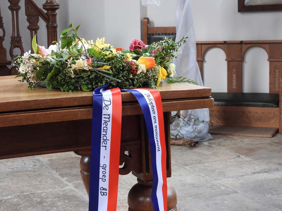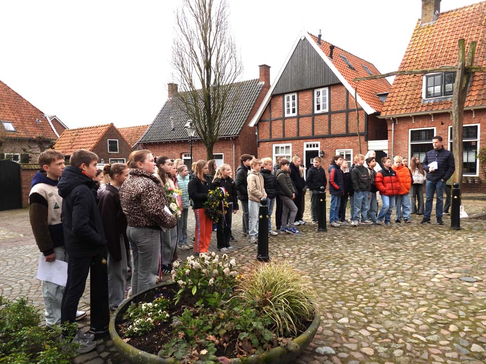 De leerlingen hadden drie prachtige kransen gemaakt en na de viering gingen de leerlingen van de Meander en ’n Baoken eerst naar het oorlogsmonument op het Bergplein. Daar werd de vlag gehesen en de eerste krans gelegd. De leerlingen van ’n Baoken met hun leerkracht vertrokken naar het monument ‘op de Valkenberg’ achter de Kuiperberg. Daar kregen ze het verhaal van dit monument te horen.