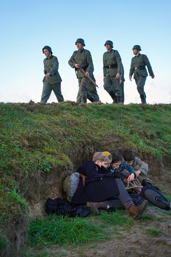 Onder de strakke regie van Lucas Camps komt de serie in het Twentse landschap op indrukwekkende wijze tot leven. In het hart van het verhaal staat de jonge Adriaan, vertolkt door de getalenteerde Finn Vogels, die in de voetsporen van zijn vader treedt en langzaam uitgroeit tot een verzetsheld. De filmcrew maakte gebruik van verschillende authentieke locaties. In de vroege ochtendzon, met dauw nog op het weiland, ontdekte Adriaan een verlaten boerderij aan de rand van de velden — een moment, waarin stilte en spanning naadloos samensmolten. Even later vluchtte hij voor honden door de straten van Denekamp, terwijl de Ganzenmarkt in Ootmarsum groen en grauw kleurde door het ritme van marcherende soldaten en voorbijrijdende voertuigen. Eén van de huizen aan deze Ganzenmarkt werd zelfs overvallen door Duitse soldaten.