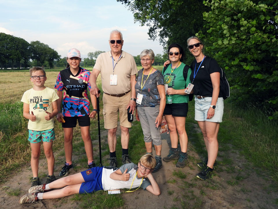 Het is voor de deelnemers telkens een feest om de finish te bereiken. Op het gezellig ingerichte Kerkplein zie je de wandelaars dan ook met een tevreden gezicht en bij velen een lach het finishdoek passeren. Op deze woensdag waren het de Kiestenen uit Agelo, die met hun vrolijke klanken de laatste meters tot een groot plezier maakten.