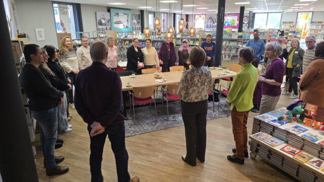Er is blijkbaar veel behoefte aan een laagdrempelige en gezellige manier om Nederlands te oefenen. Dat is één van de redenen om het Taalcafé in het leven te roepen. Vrijwilligers en een bibliotheekmedewerker hadden de ochtend zorgvuldig voorbereid—al bleef het spannend hoeveel deelnemers er zouden komen. Die zorgen bleken onnodig: ruim twintig mensen kwamen langs, onder wie zeven vrijwilligers.