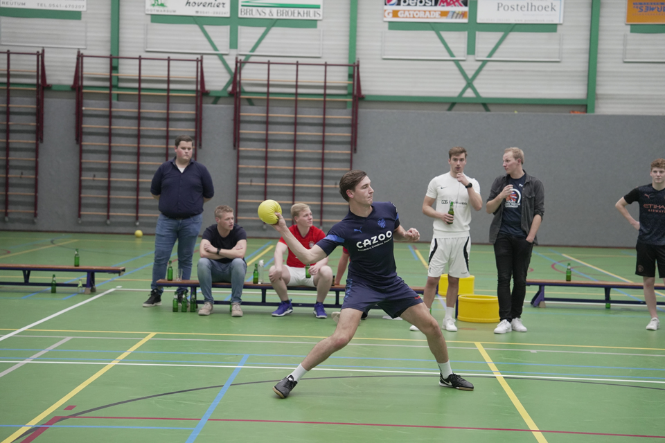 Maar liefst 21(!) teams hebben zich aangemeld, natuurlijk voornamelijk jeugd uit Ootmarsum, maar dit jaar ook met teams uit Utrecht, Oldenzaal en Vriezenveen. Dit jaar kregen de teams de optie om zich aan te melden voor een fanatiek spelletje, of een niet fanatiek spelletje. Dit uiteraard om het spelplezier voor iedereen zo groot mogelijk te maken! Uiteraard wilde iedereen winnen en dat merkte je vanaf het begin. Het blijft mooi om te zien hoe fanatiek iedereen wordt van dit spelletje! De poulefases werden in een kleine twee uren afgerond, waarna de halve finales gespeeld konden worden. Hierin speelden Gasten met Masten tegen Mike Oxmall F.C. en Rood to Malle tegen Poar Bikkn. Na twee spannende halve finales bleven er nog twee teams over, namelijk Mike Oxmall F.C. en Poar Bikkn. De finale werd door vrijwel iedereen bekeken en de beide teams werden van alle kanten aangemoedigd! Toen de winnaar van afgelopen jaar aan de winnende hand was, werd het gejuich deels overspoeld door boe-geroep. Wellicht was dit vanwege de tactiek die ze afgelopen jaar hebben gehanteerd, of wellicht konden ze het dit jaar ook niet helemaal laten. Ik durf het niet te zeggen, maar voor de scheidsrechters stonden ze in elk geval terecht in de finale! Uiteindelijk wist dit team, Mike Oxmall F.C., de finale te winnen en hiermee ook de titel te prolongeren! In de “net wat minder fanatieke” poule wisten de dames van E.G.O. de eerste plaats binnen te halen, terwijl Team Pim hier tweede werd!