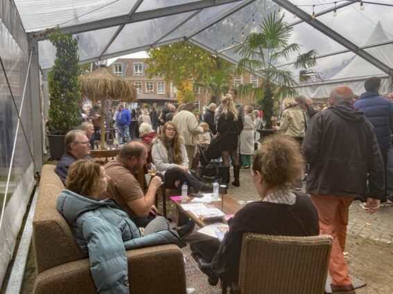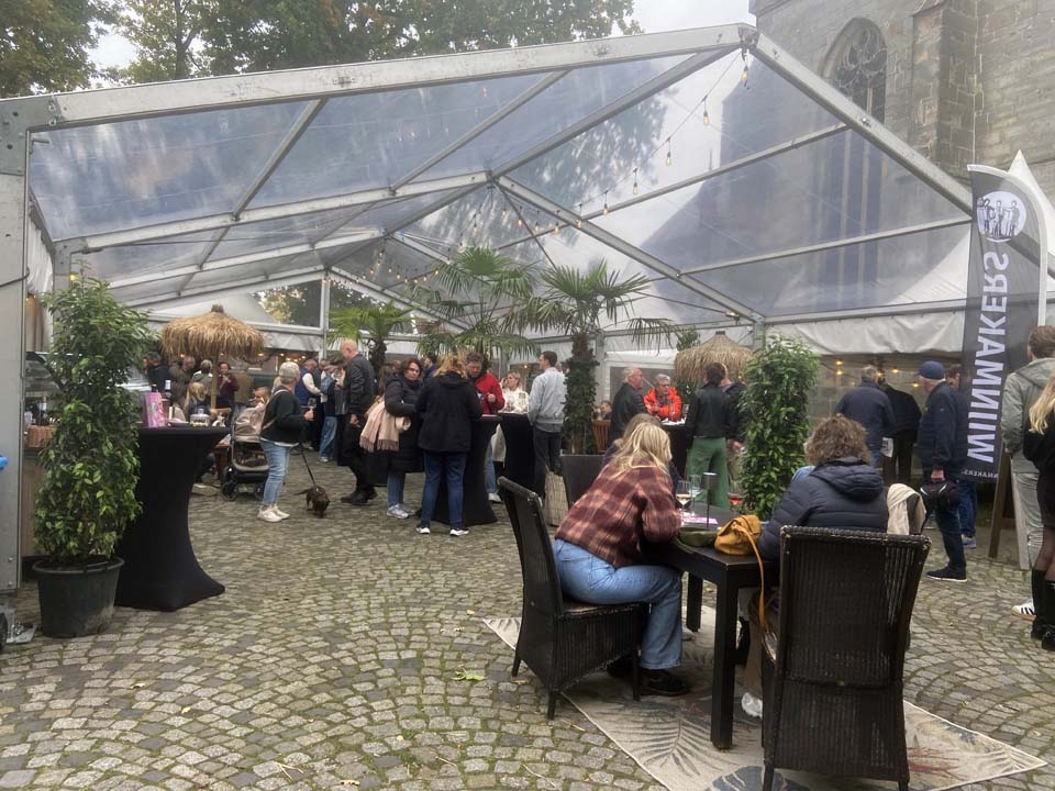 De keuze om het Kerkplein deels te overkappen, blijkt een goede. Het komt de gezelligheid zeer ten goede en ook als het onverhoopt regent, is het een uitkomst. En last but nog least: de concentratie van alles op het Kerkplein slaat ook zeer aan. Kortom: de stichting, die speciaal is opgericht voor de Twentse Wijndagen is op de juiste weg en op koers.