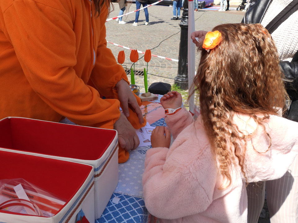 Het was gezellig druk op Koningsdag in Ootmarsum. Op het Kerkplein was er sprake van een heerlijke sfeer. Papa’s en mama’s en opa’s en oma’s liepen met hun (klein)kinderen langs de diverse springkussens en gave stormbanen. Genieten geblazen voor de jeugd met ook nog eens een aantal uitdagende speeltoestellen. Het is ook altijd leuk om aan de oud Hollandse spelletjes mee te doen. Heel veel kinderen maakten ook gebruik om te knutselen of zich te laten schminken. Veel oranje op het Kerkplein met natuurlijk ook het rood-wit-blauw van boven naar beneden.