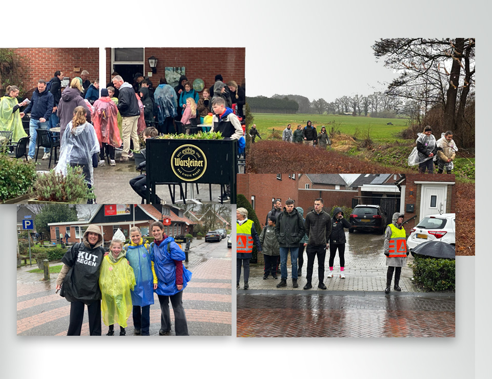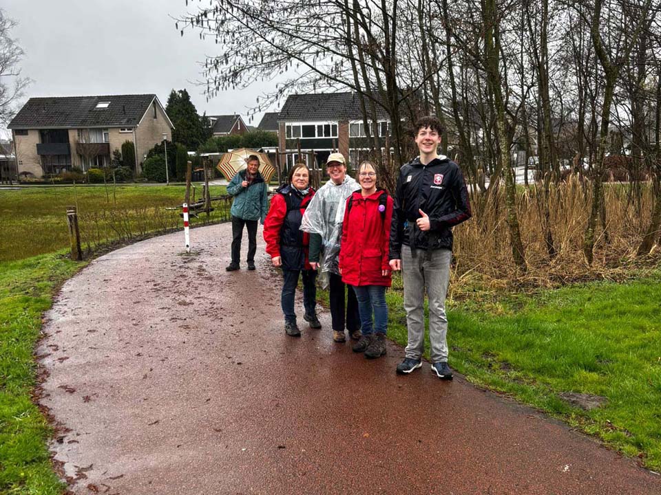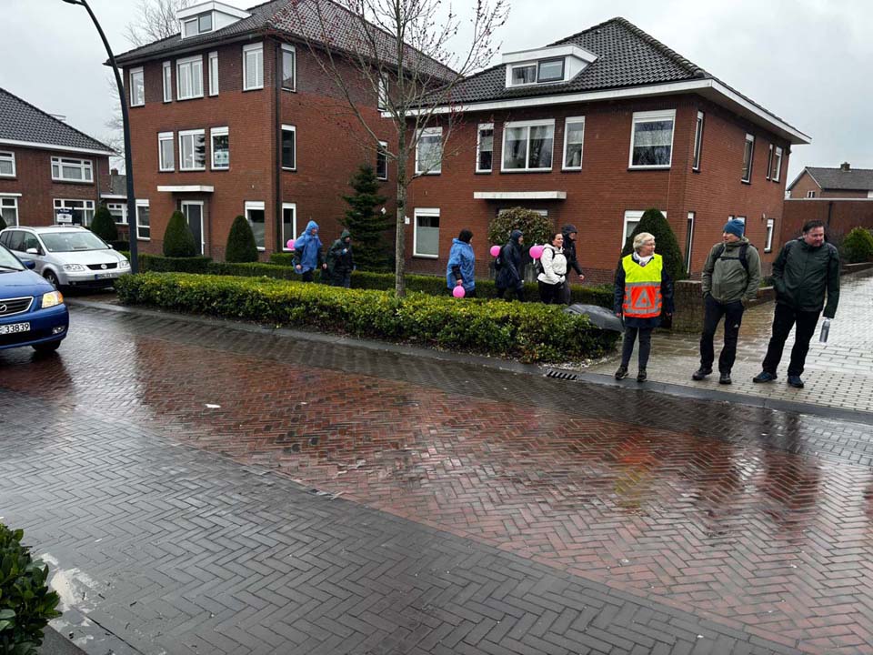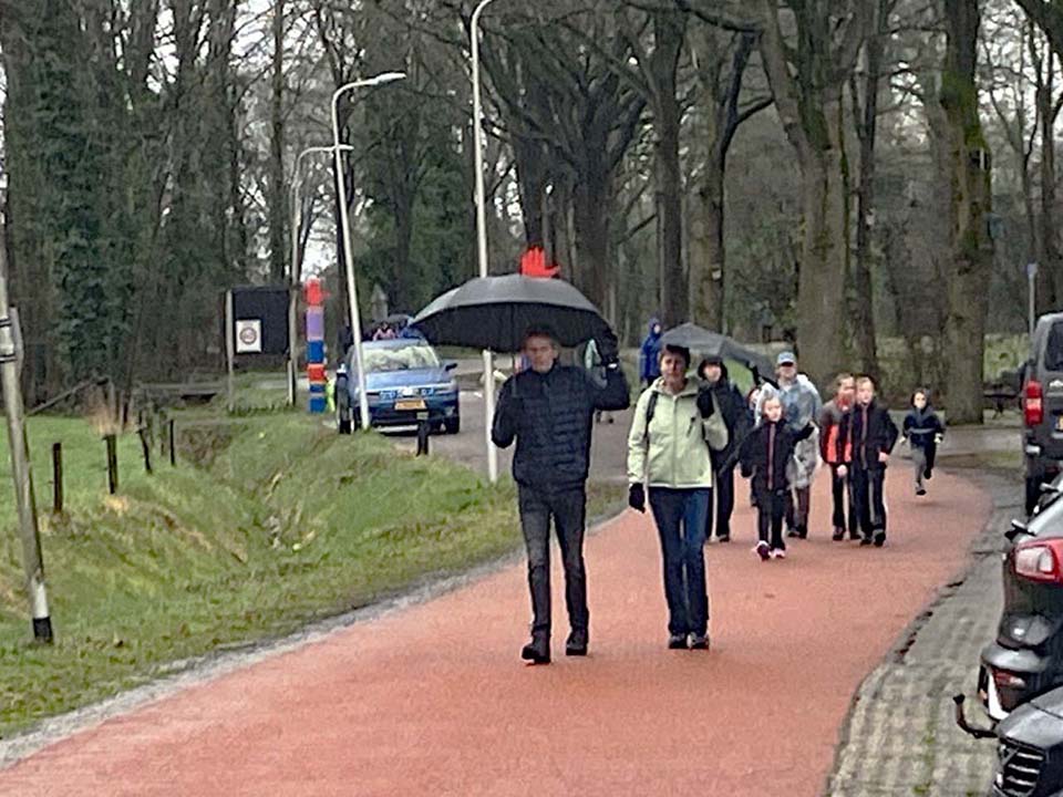 Ruim 600 deelnemers gingen deze uitdaging aan en zoals het er nu naar uitziet hebben zij ruim 25.000 euro opgehaald voor de goede doelen. Respect voor al die wandelaars, die uren door de motregen liepen. Pas op het laatst was er nog een bleek zonnetje aan de lucht te zien. Dat leverde geen warmte op, maar wel een droge finish. Mooi dat een heel groot gedeelte van de deelnemers de eindstreep haalden en hartverwarmend dat bij diverse stempelposten familieleden en vrienden klaar stonden met droge kleding.