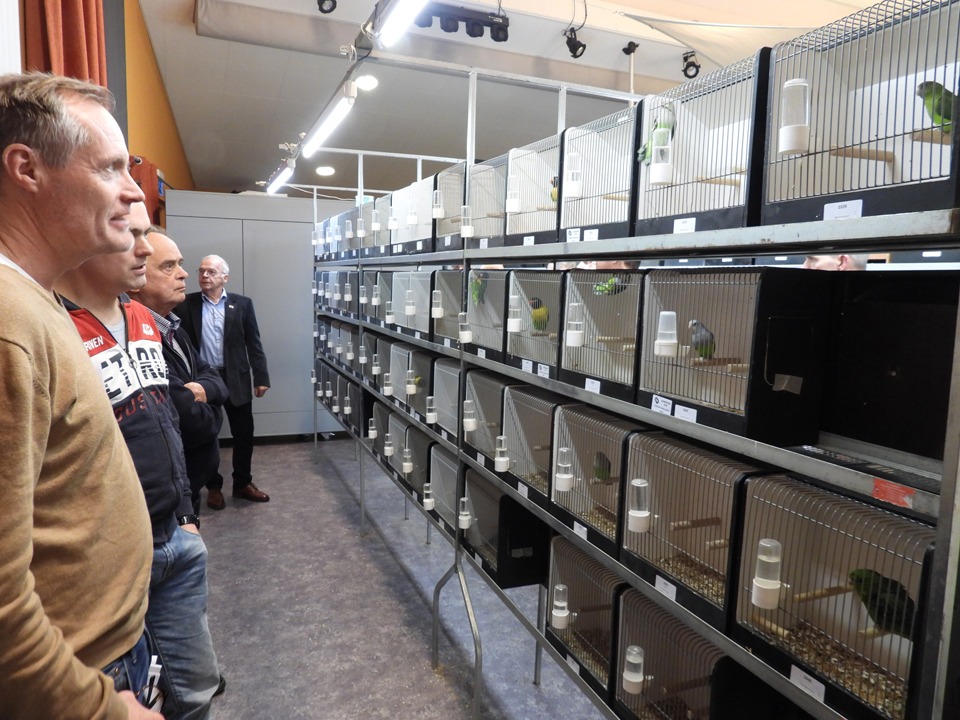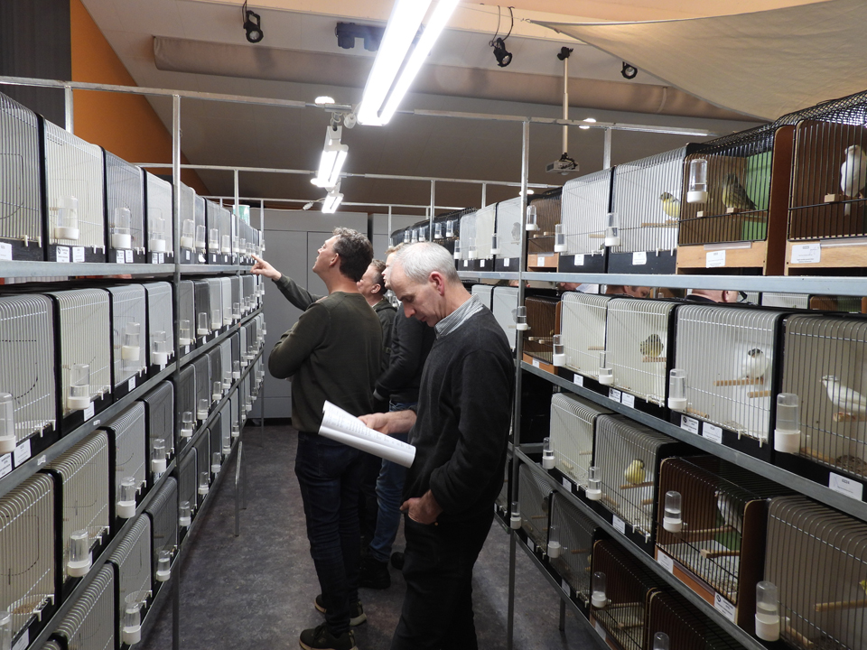 De leden van de Vogelvereniging Ootmarsum zijn afgelopen dinsdag begonnen met de opbouw van deze Euregio Vogel Show. “We hanteren een schema, zodat ieder lid wanneer ze verwacht worden en wat ze aan werkzaamheden verrichten. Dat gebeurt altijd in een hele goede harmonie. Op woensdag komen de keurmeesters. Dit jaar waren er 5 en ze hebben allemaal hun eigen specialisme. Ze letten vooral op kleur, conditie, formaat, poten, snavel en bevedering en dat laatste heeft ook met de kleur te maken,” vertelt secretaris Patrick Scholten. “Het keuren gebeurt bij ons altijd op ooghoogte. Het zijn altijd spannende momenten, want ieder lid doet zijn uiterste best om een zo goed mogelijke vogel of een stam te kweken. De waardering volgt dan tijdens deze show. Wie 89 punten haalt heeft een ‘gewoon’ mooie vogel en wie 92, 93 of 94 punten haalt weet dat het een bijzonder mooi exemplaar is. Dat geldt ook stellen en een stam. Deze moeten in alle details zoveel mogelijk op elkaar lijken. De winnaar van het Bondskruis krijgt extra waardering voor zijn kweekresultaten. Tevens is er een 5 Vogelcup. De winnaars kweken kanaries, tropen en kromsnavels. In deze drie categorieën is deze cup te winnen.”