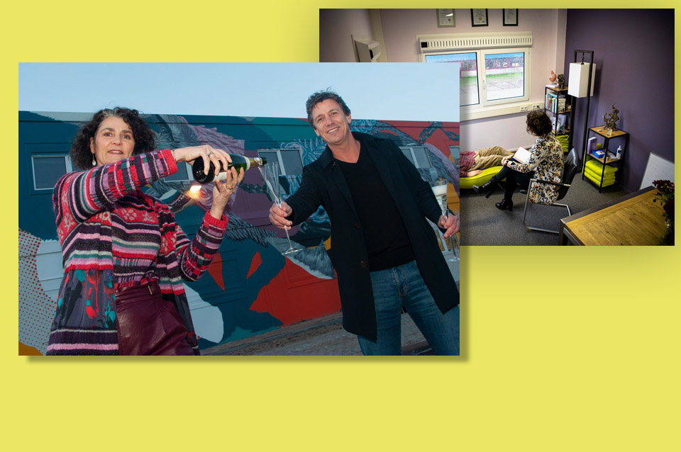 Voorzitter MKB Nederland Jacco Vonhof heeft samen met hypno-coach Paola Pisu haar praktijk in het Zwolse kantoorgebouw ‘De Verbinding’ geopend. Pisu is huurder van het eerste uur en trok tijdens de tweede lockdown met haar hypno- en coachpraktijk in dit gebouw. De Verbinding is onderdeel van het bedrijventerrein van de Creatieve Coöperatie aan de Grote Voort in Zwolle.