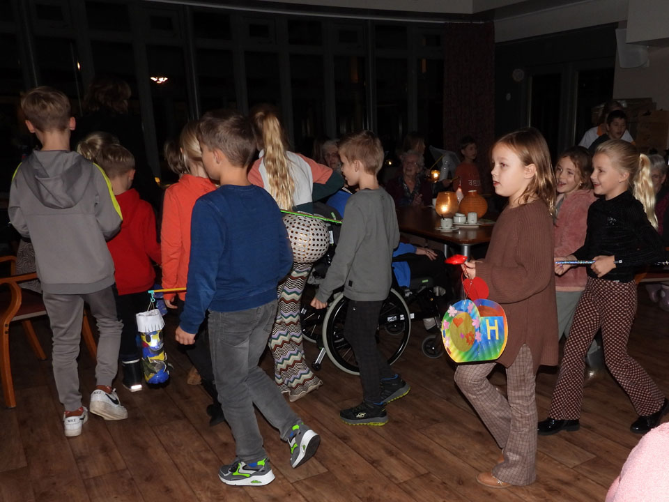 Vanaf het moment dat de jeugd naar binnenliep, werden de bekende Sint Maartensliederen gezongen. Met hun lampion liepen ze door de gangen van het gebouw waar de bewoners een plekje hadden gevonden of blij verrast de deur openden.