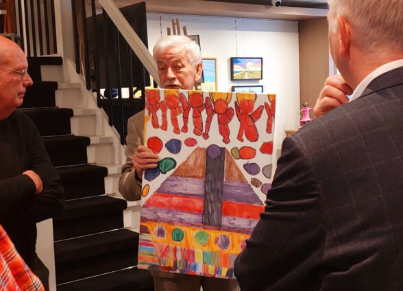 De gasten konden daarna onder het genot van een glaasje alle kunstwerken bekijken en een praatje maken met de aanwezige kunstenaars.
